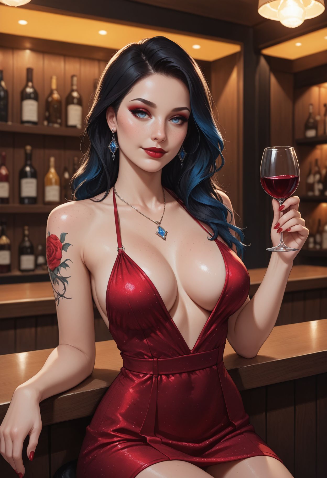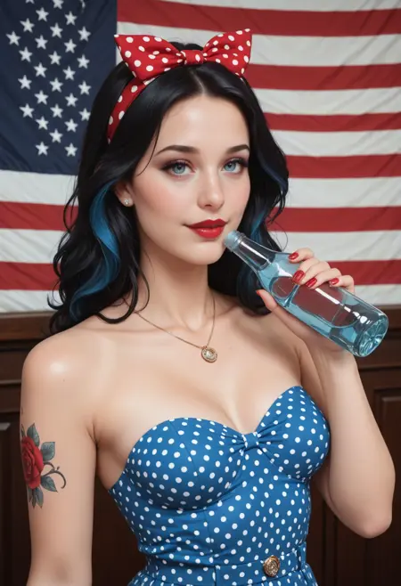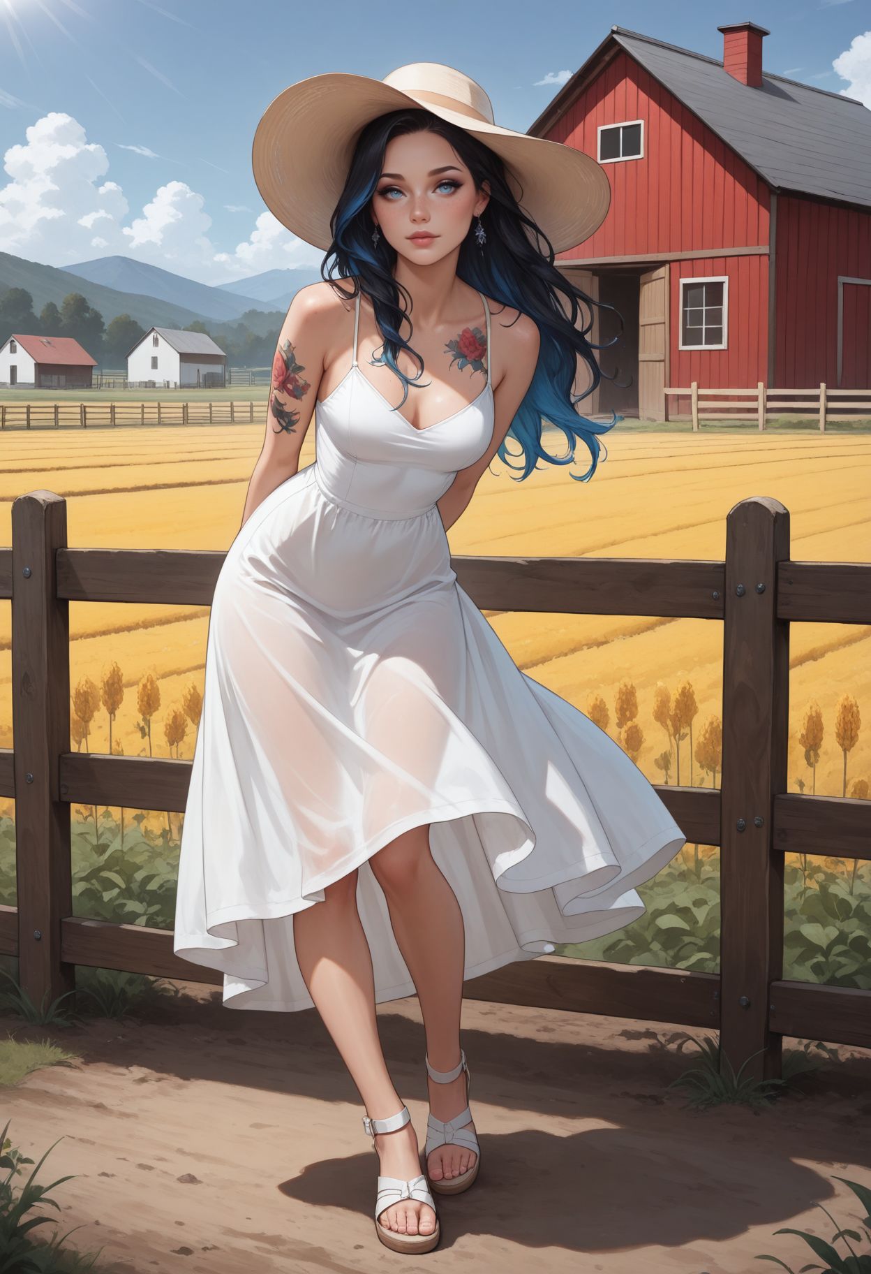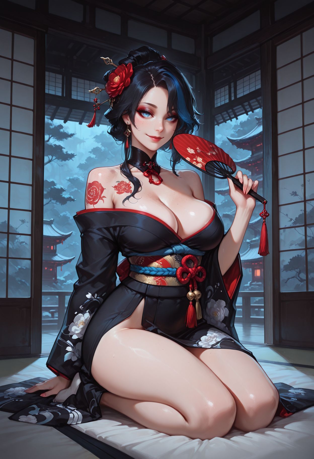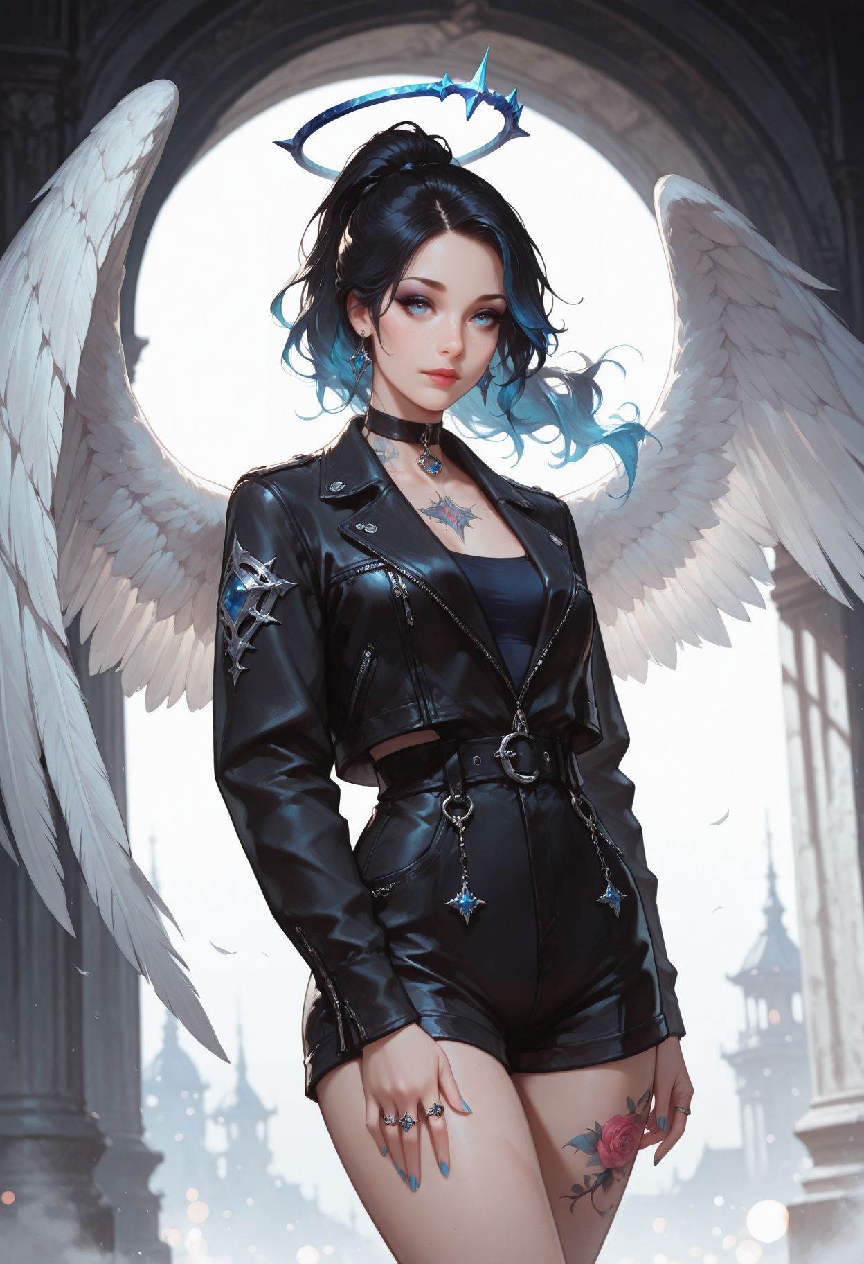 OCBlhrGr, black hair, multicolored hair, blue eyes, tattoo