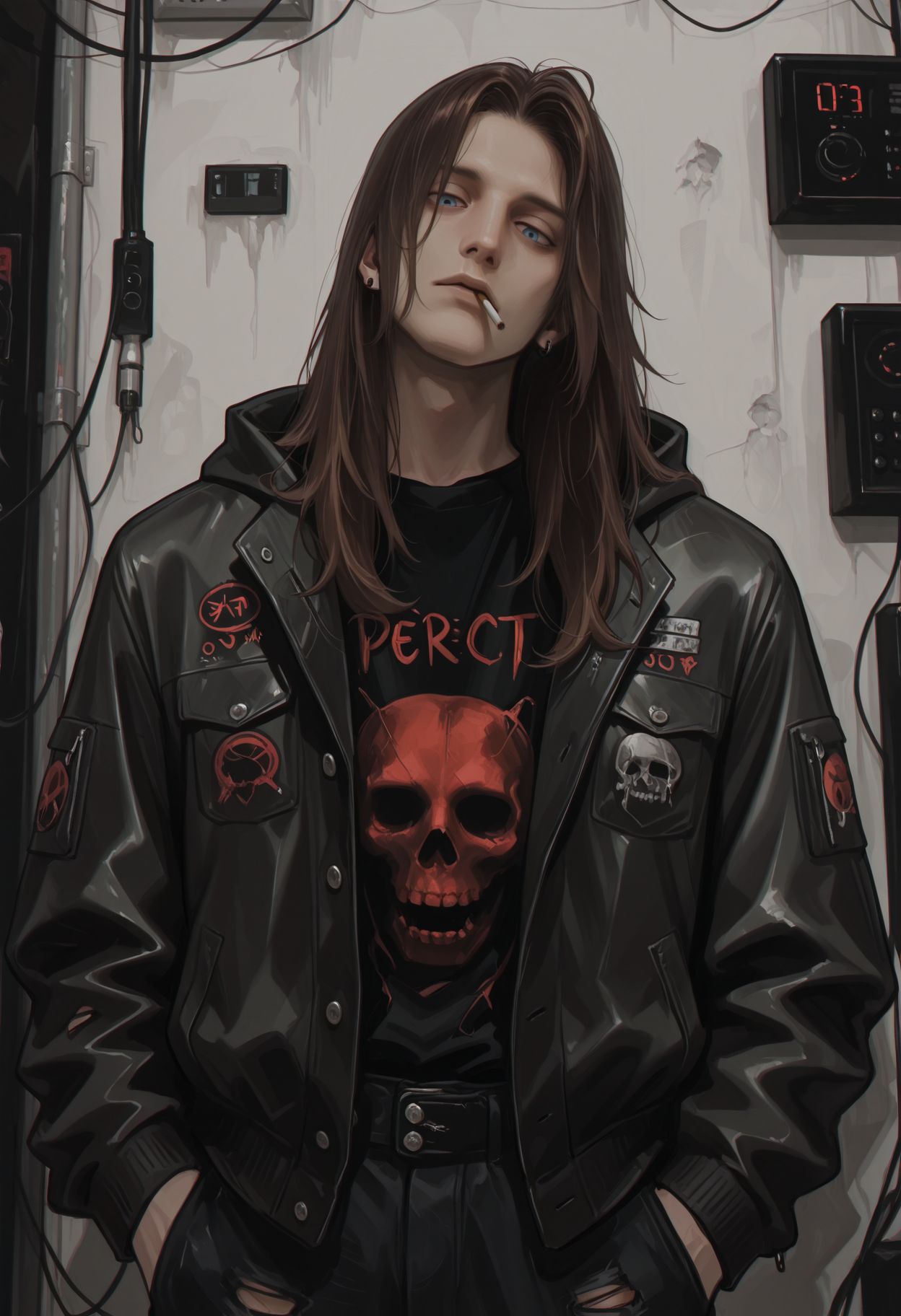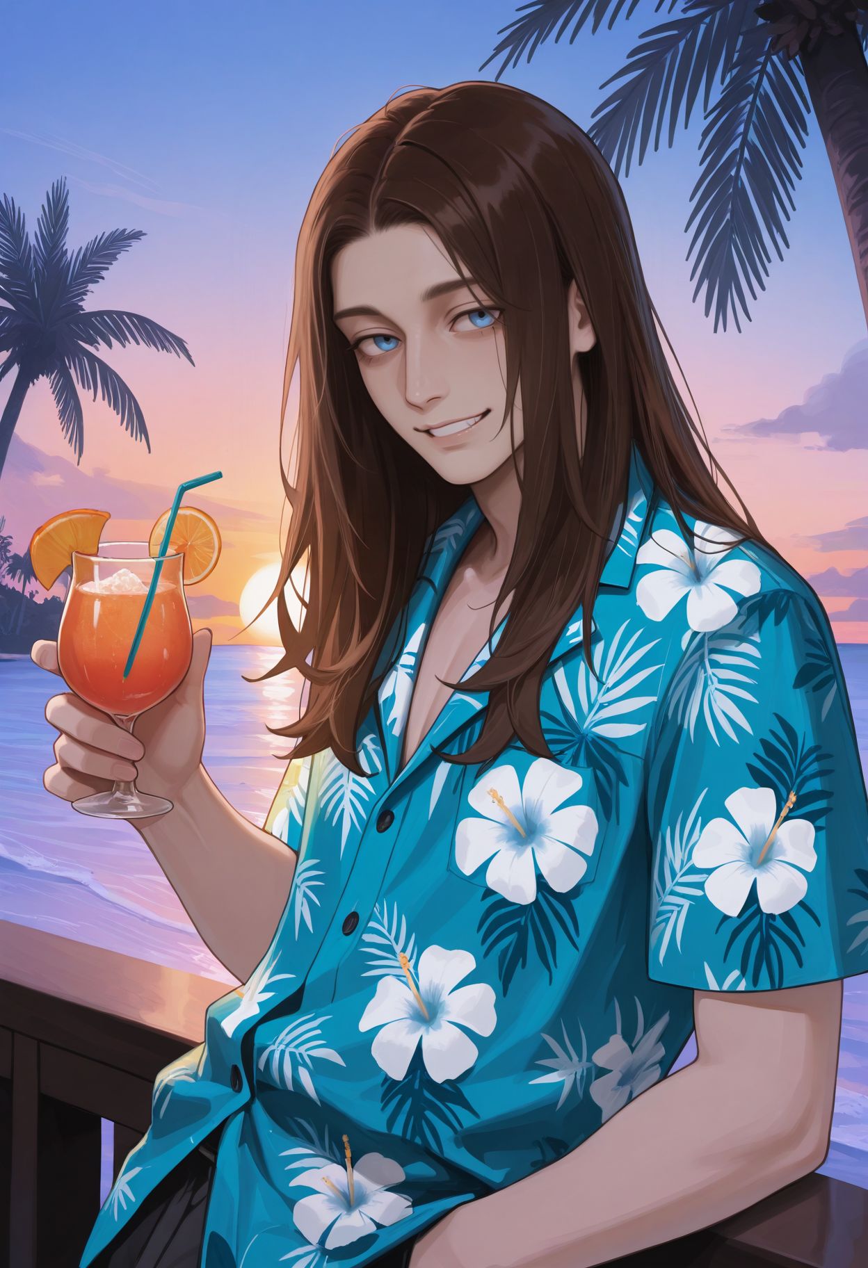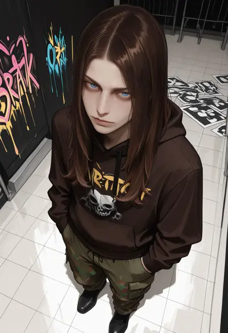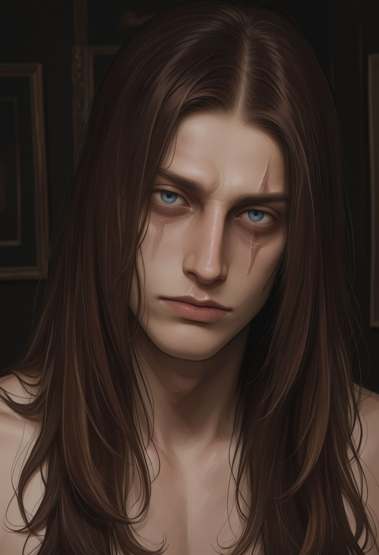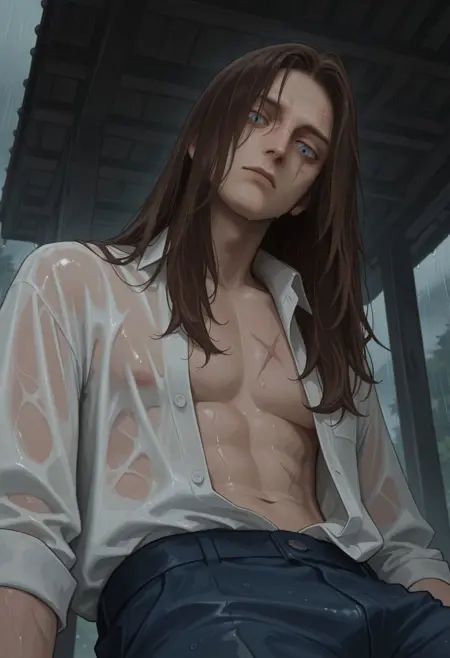 OcJ4ck, 1boy, male focus, Long hair, Brown hair, blue eyes