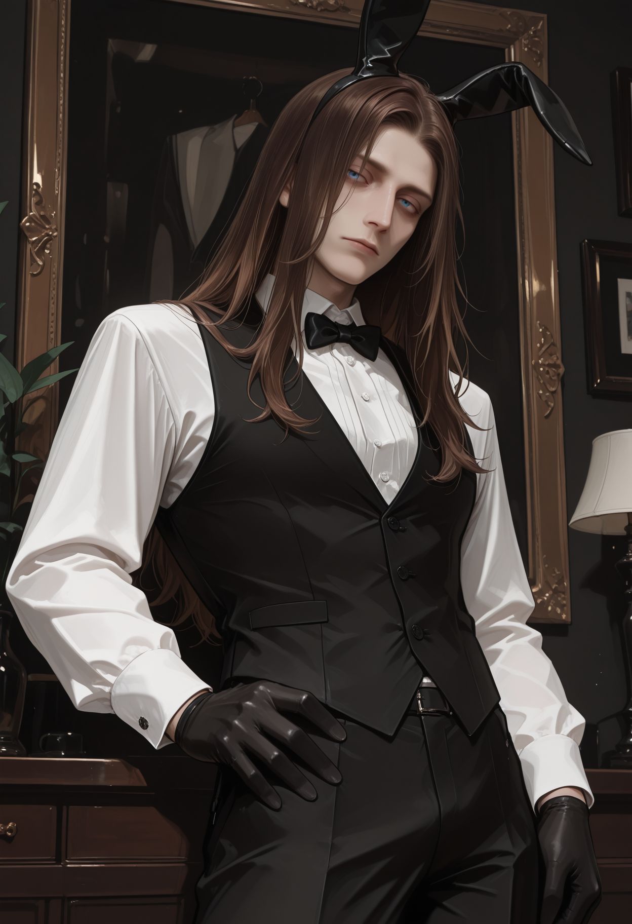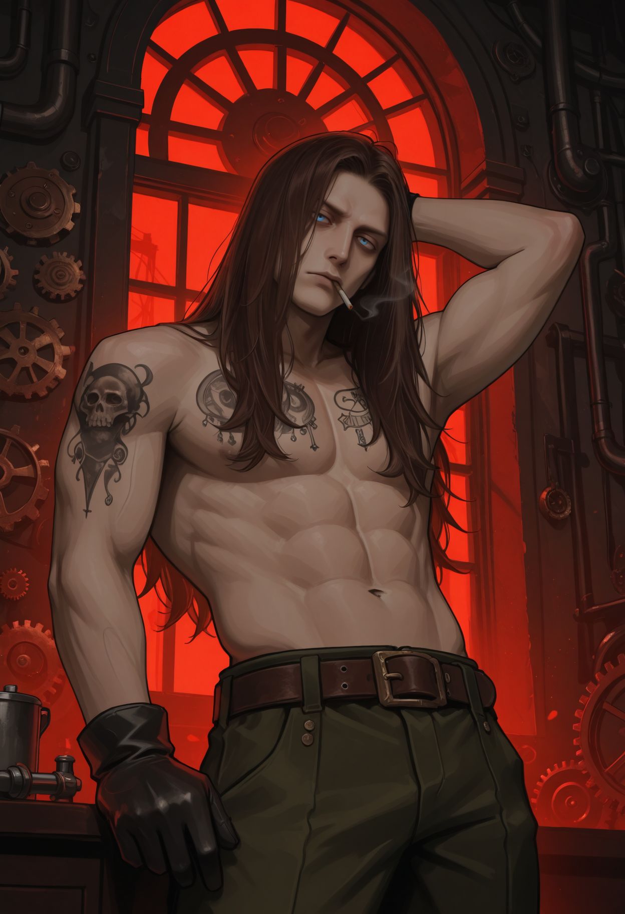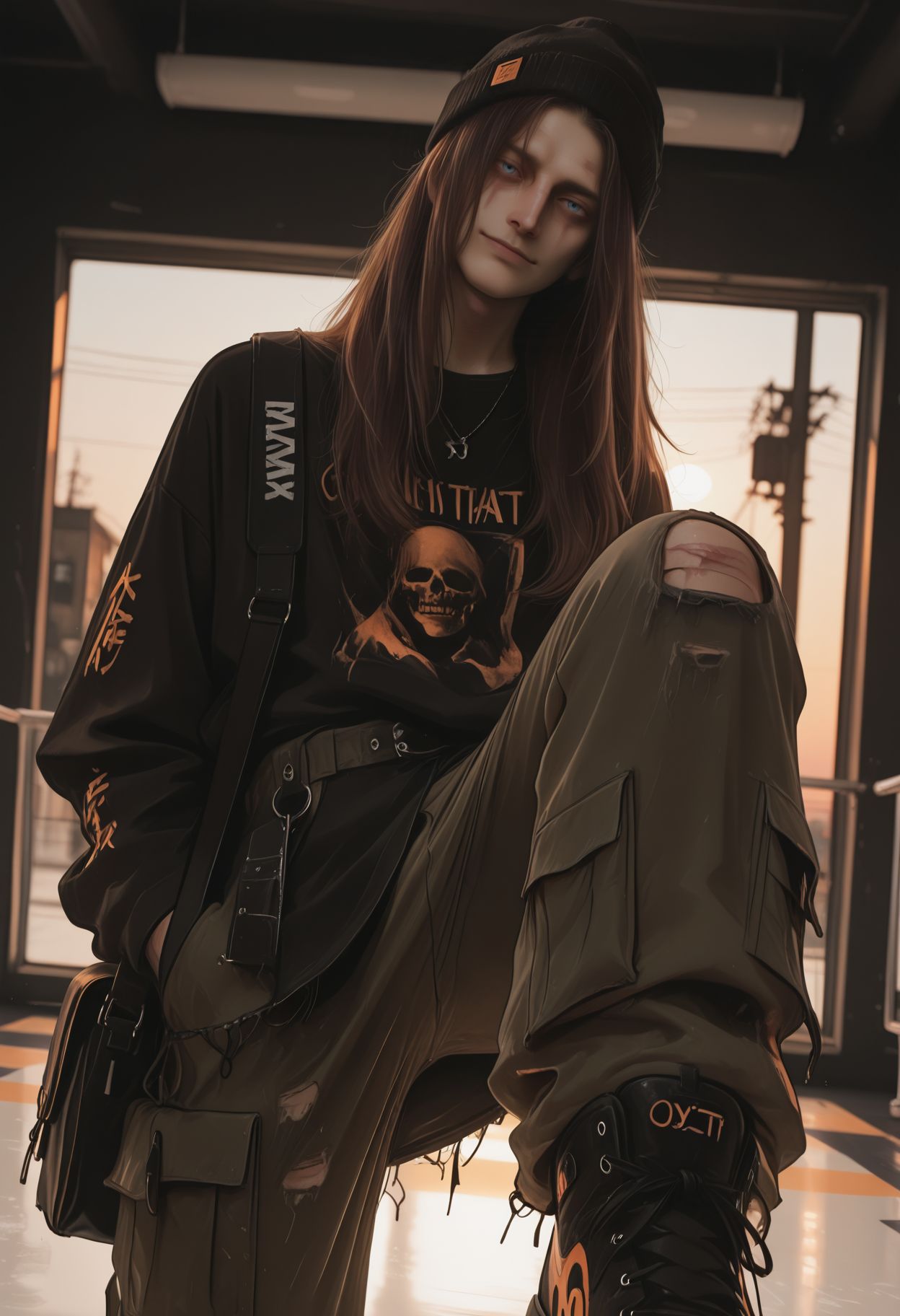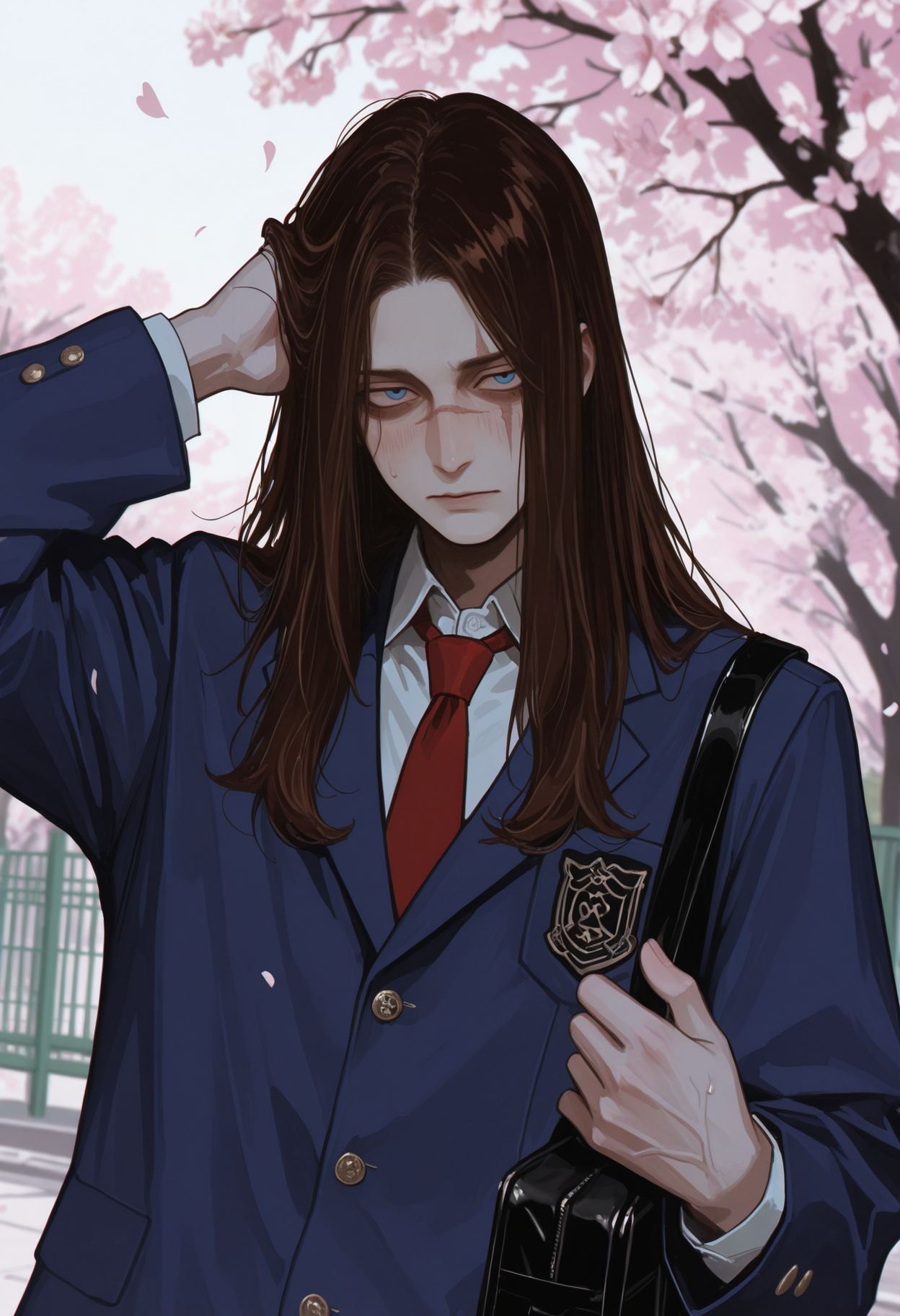 OcJ4ck, 1boy, male focus, Long hair, Brown hair, blue eyes