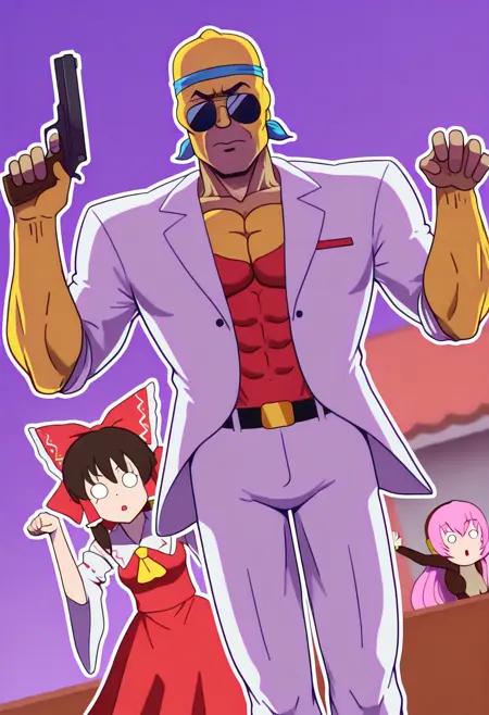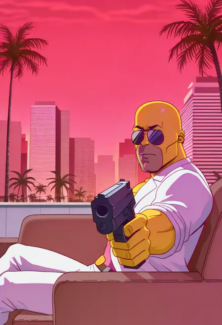 このモデルは深刻な過学習状態であり、表示できるポーズが非常に限られています。また、画像品質も劣化します。ヒーロー・シンプソンには他のスタイルが適用できません。モデルのプレビュー画像のほとんどはデータセットから取得したものです。このLoRAは結果的に良くありませんでしたが、LA-Z RIDERの映像時間は1.5分未満なので、本来良くなかったのも無理はありません。しかし、このオープニングテーマを基にLoRAを作りたかったのです。この曲が本当に気に入っています。また、LA-Z RIDERに登場するヒーロー・シンプソンとネッド・フランダースのキャラクターがとても面白く仕上がりました。