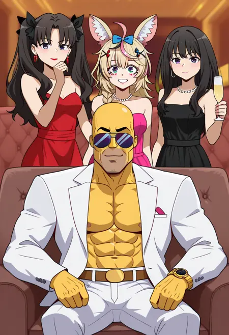 いいえ、筋肉質なソファはサポートされていません。腕がある画像では「couch with arms」とタグ付けしましたが、これは機能しません。このような珍しいコンセプトには彼の画像が少なすぎます。しかし、彼はとてもカッコいいので、独自のLoRAを持つに値します。