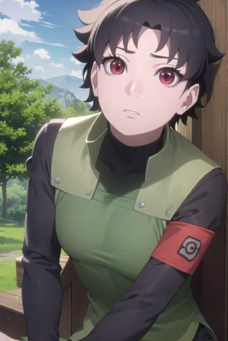 mirai sarutobi 头带,黑发,(红眼:1.3),短发,护额,木叶村标志,