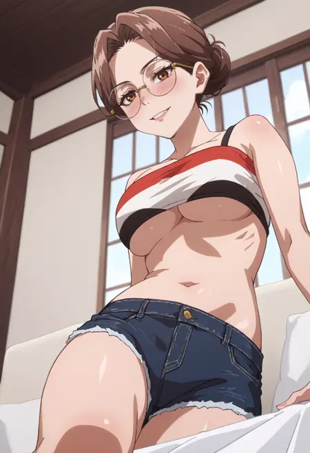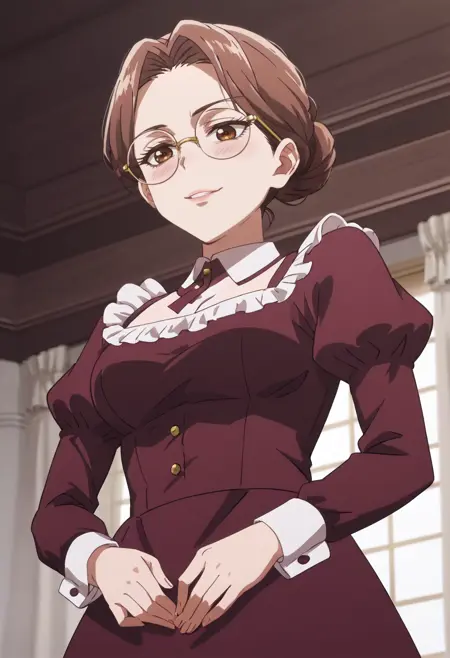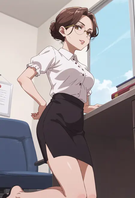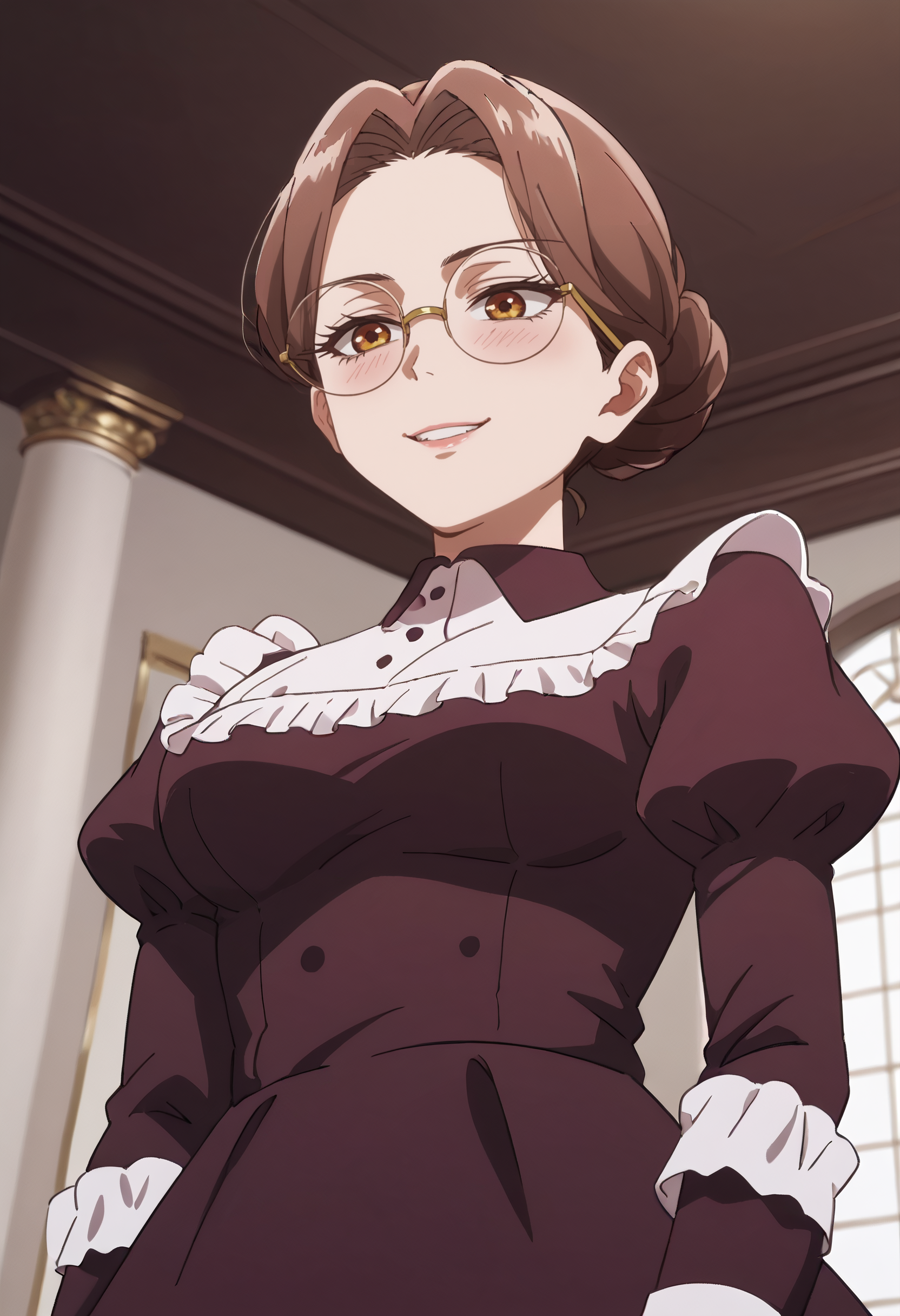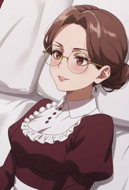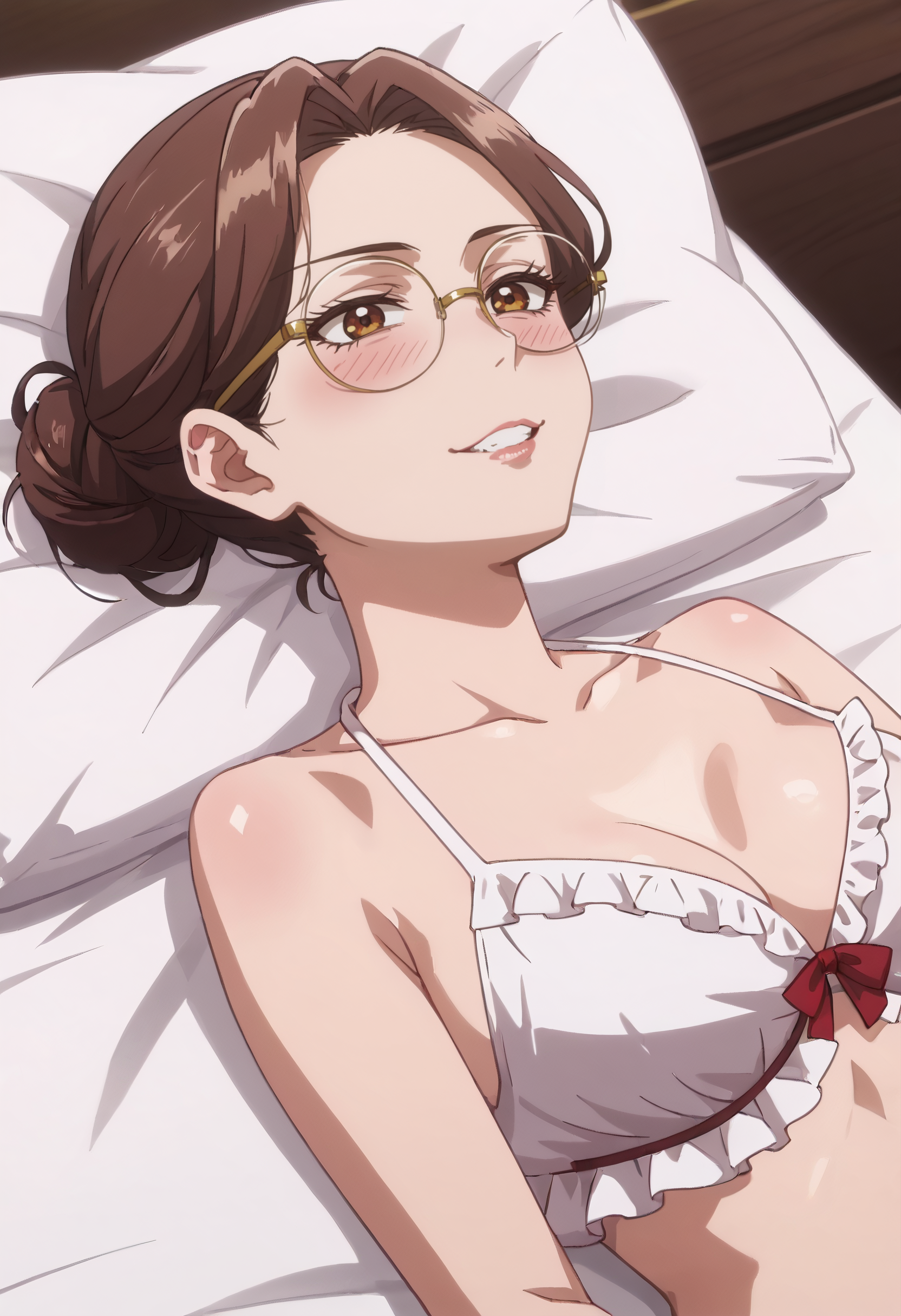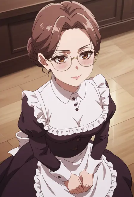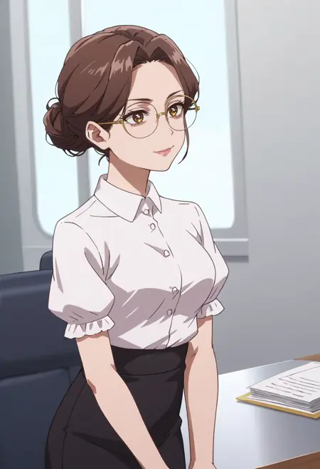 A4OMailen、茶色の目、茶色の髪、短い髪、髪の結び目、前髪、長い髪、眼鏡、