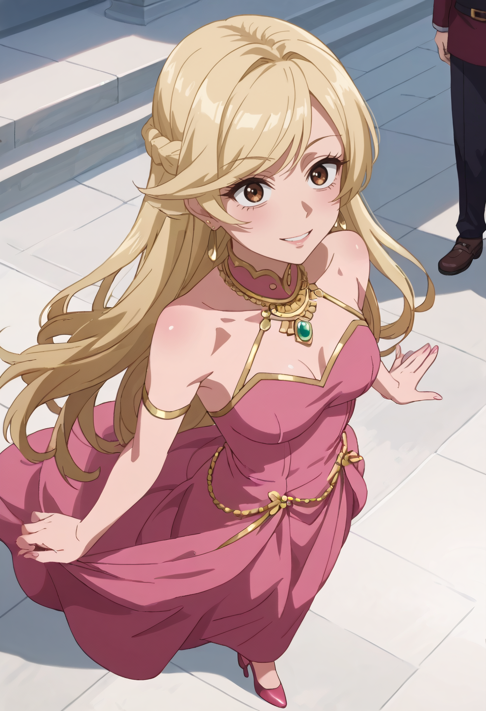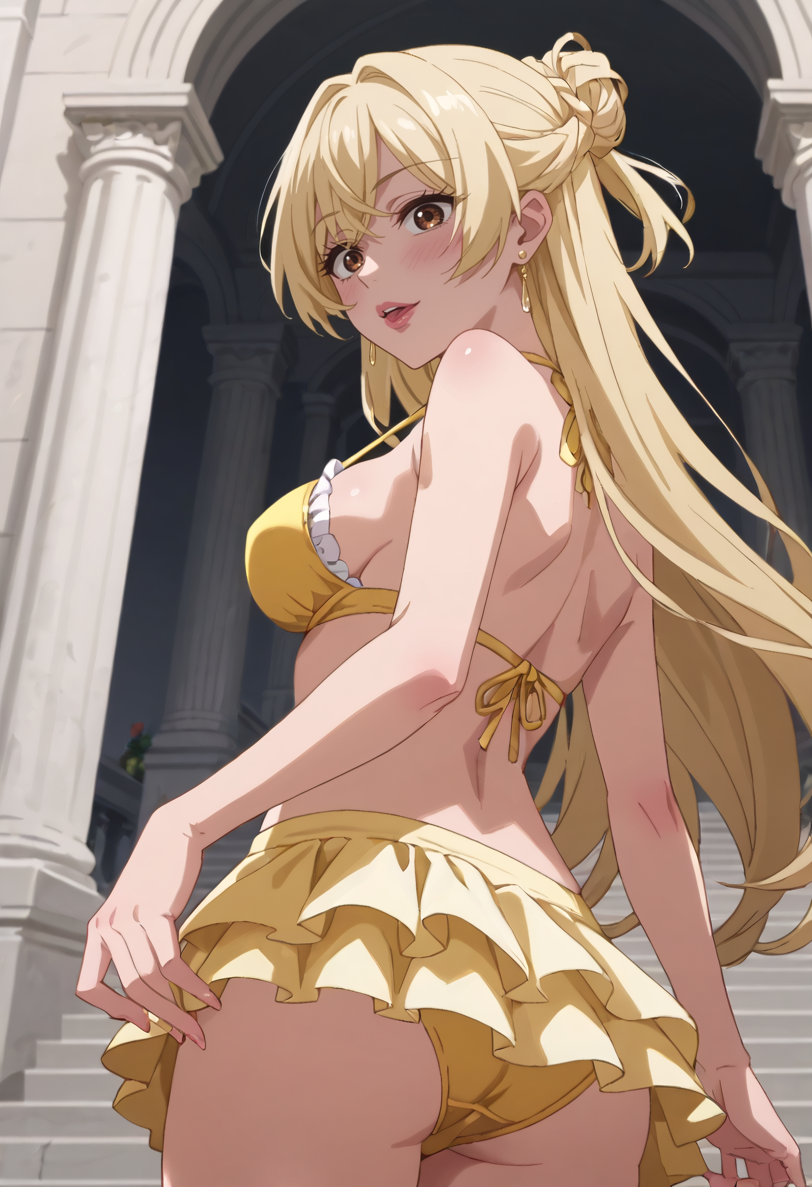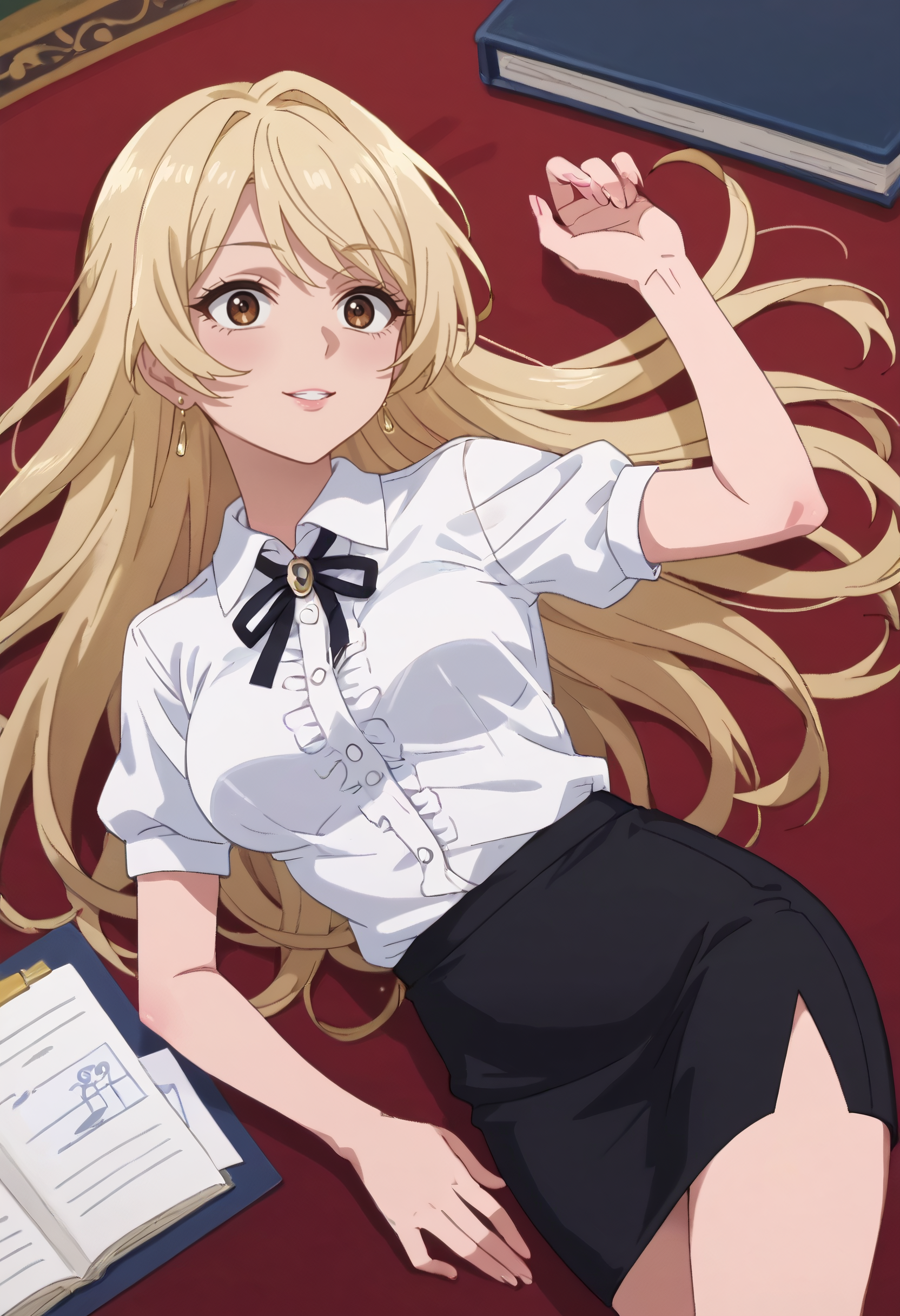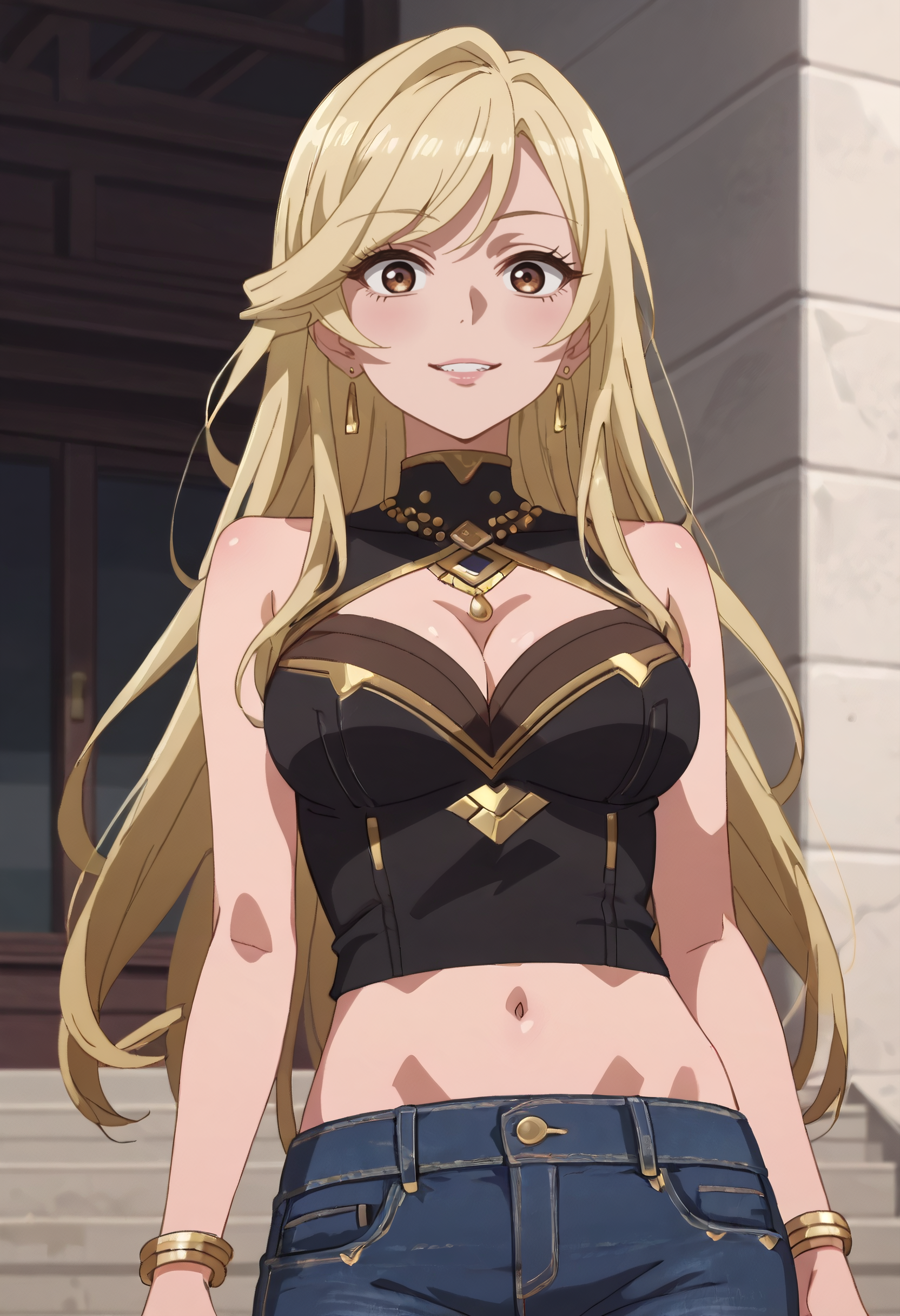 A4OMelissa、金髪、長い髪、茶色の目、髪の下に見える眉、前髪、イヤリング、ジュエリー、