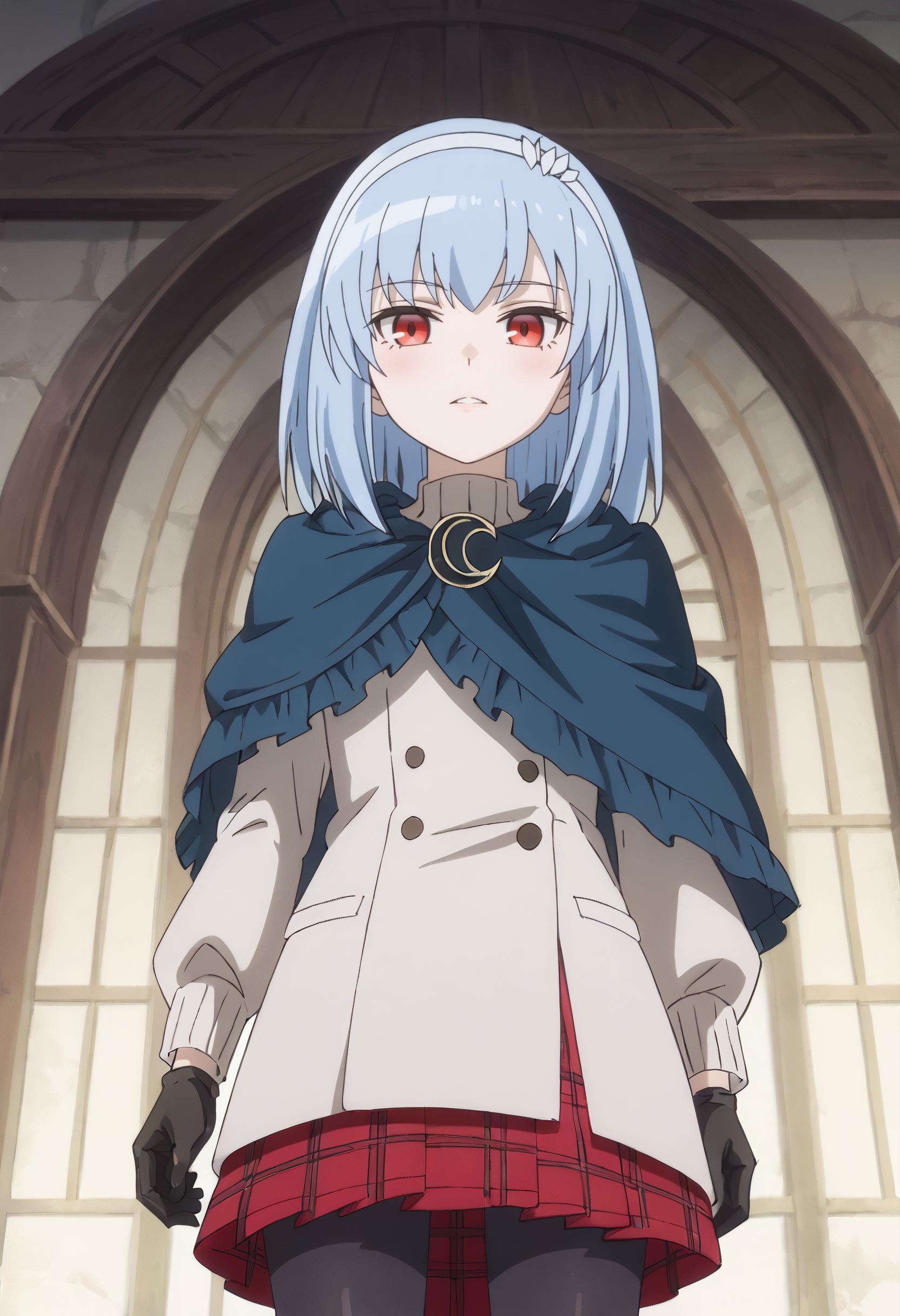 SophieOutfit,长袖,手套,短披肩,连衣裙,发带,斗篷,黑色手套,裙子,连裤袜,黑色腿部服饰,格子图案,格子裙,