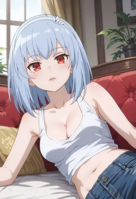 AMGSophie,红眼睛,眉毛透过头发可见,刘海,长发,头发遮住眼睛,蓝发,