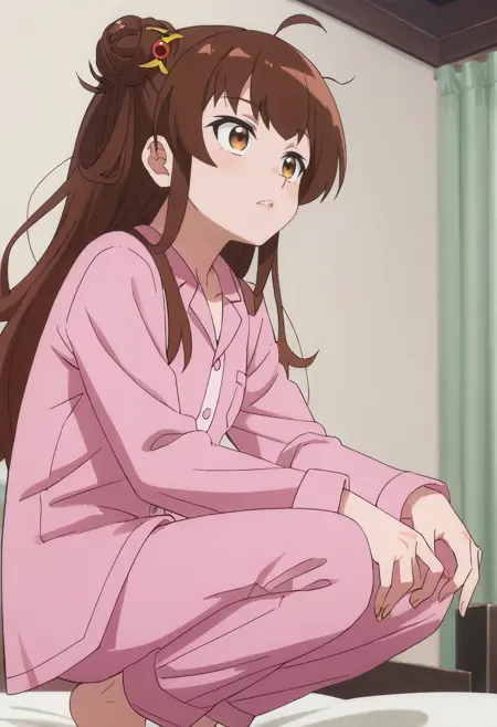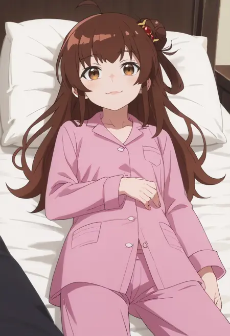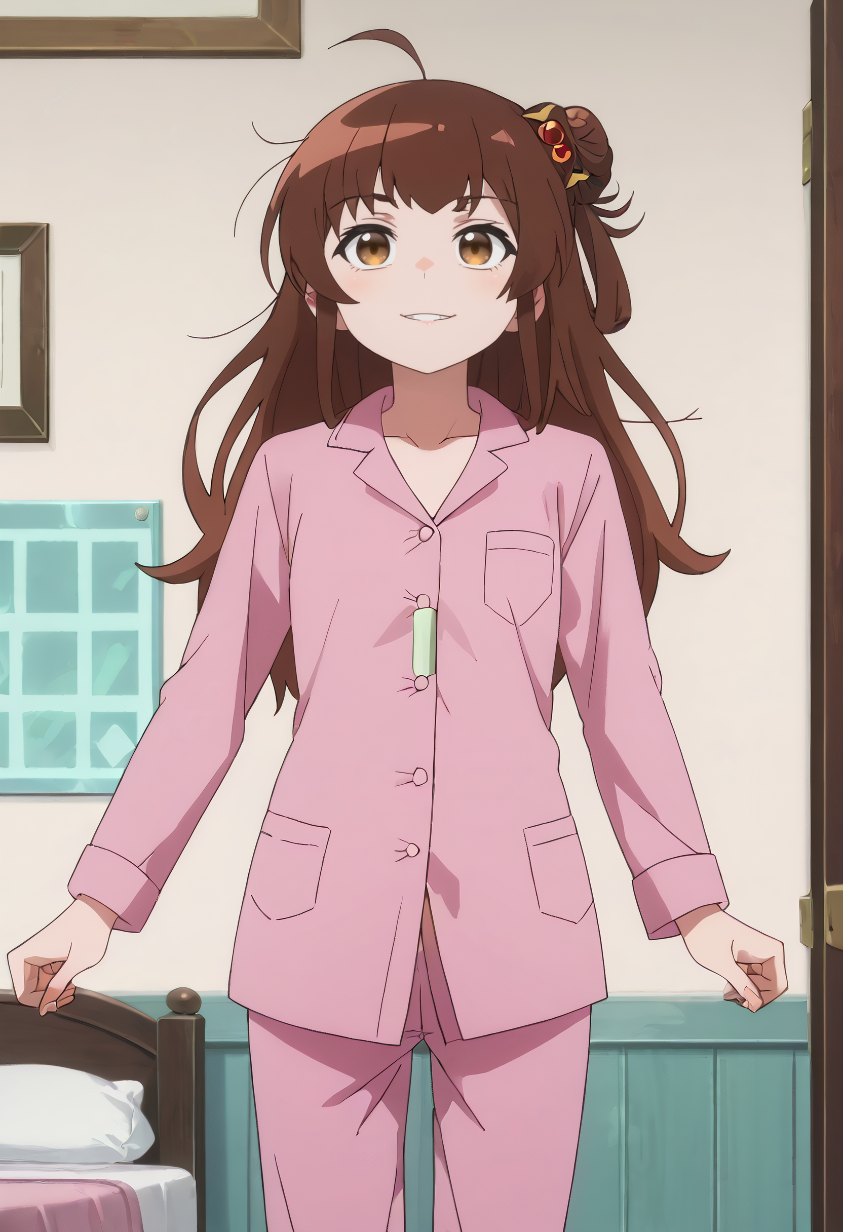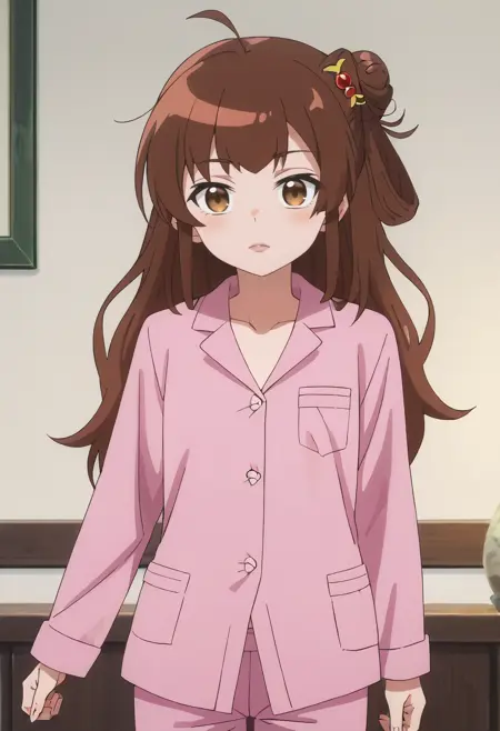 MegPajamas, shirt, pajamas, collarbone, collared shirt, pink shirt, messy hair, long sleeves, pink pajamas, dress shirt, pink pants,