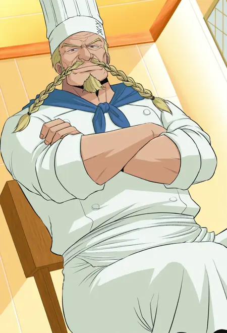 OPZeff、金髪、顎ひげ、ツインブレードのひげ、シェフ帽、シェフのユニフォーム