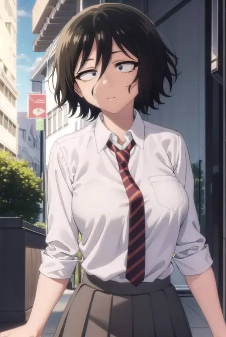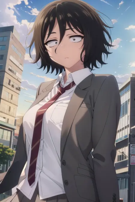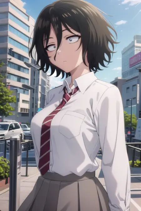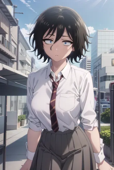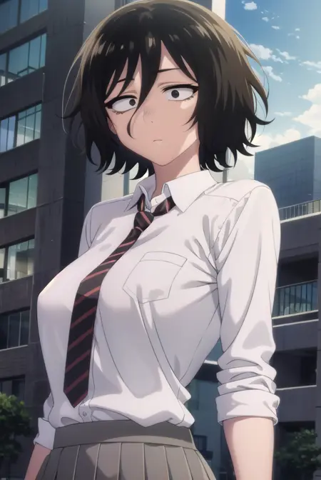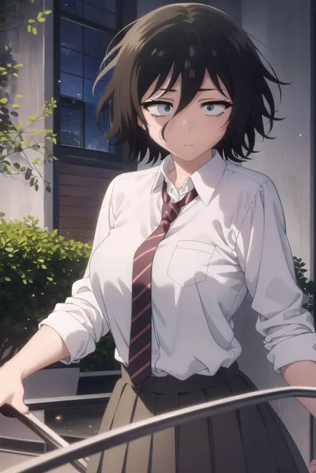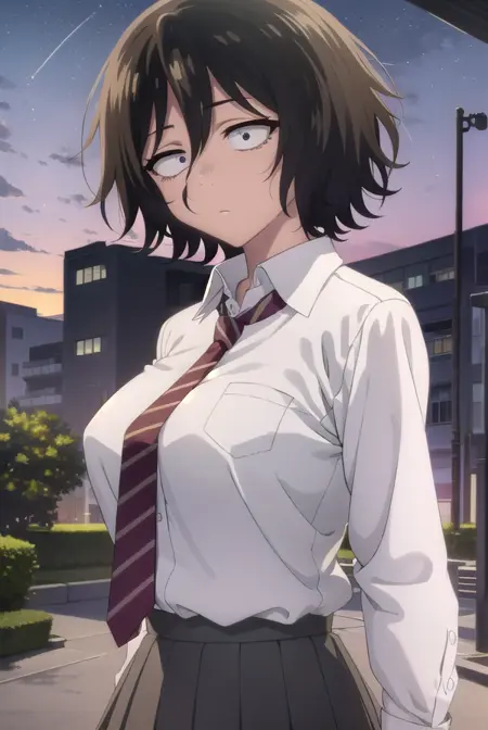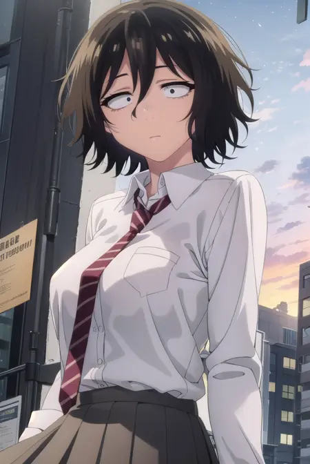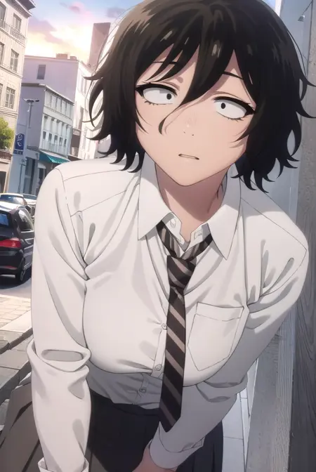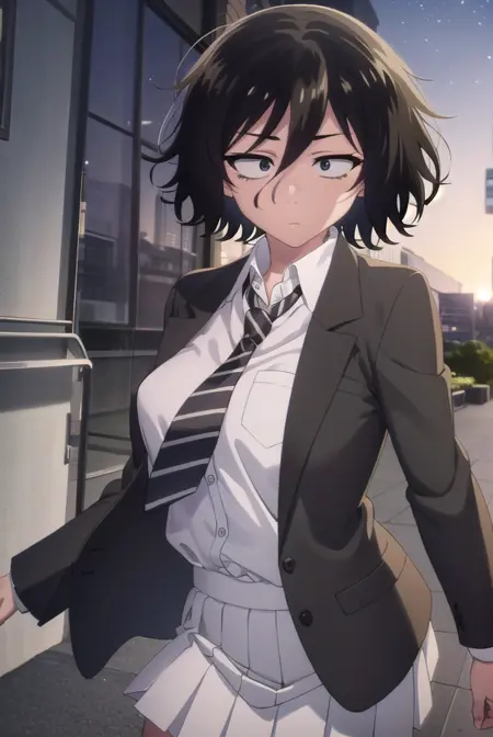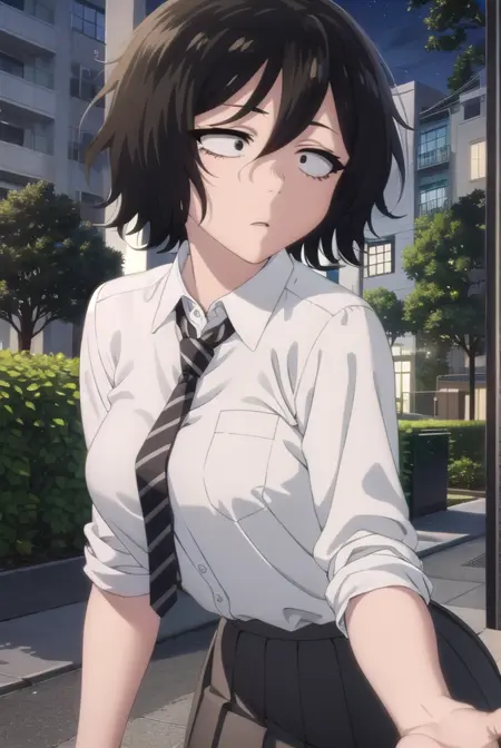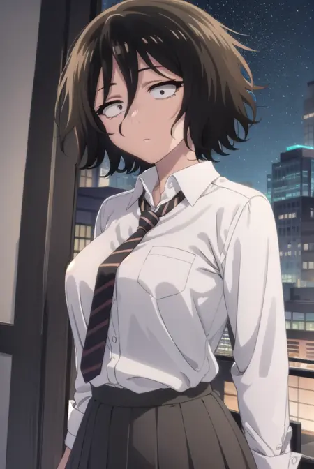 akira asai,短发,黑发,凌乱的头发,眼下有黑眼圈,三白眼,(黑眼:1.5),头发遮住眼睛,