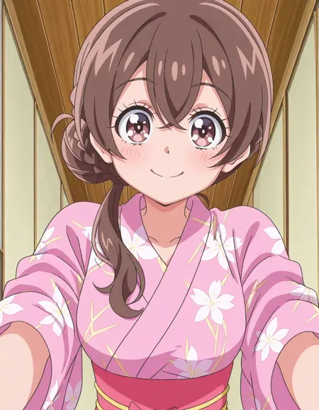 アニメスクリーンキャプチャ、ソロ、1girl、yuiyukata、nagomiyui、髪の結び目、編み込み、片方のポニーテール、lora:nagomiyui_IL:0.8、高解像度、素晴らしい品質、最上品質、非常に美的、傑作、absurdres