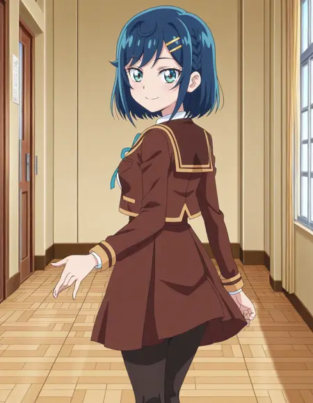 anime screencap, solo,1girl,kokoneschool,fuwakokone,blue ribbon,pantyhose,school uniform lora:fuwakokone\_IL:0.8, high definition,amazing quality,best quality,very aesthetic,masterpiece,absurdres