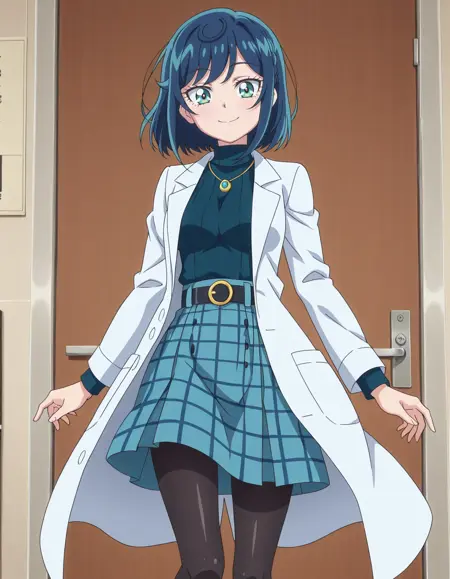 anime screencap, solo,1girl,kokonewinter,fuwakokone,pantyhose,belt,skirt, black pantyhose, labcoat,plaid,lora:fuwakokone\_IL:0.8, high definition,amazing quality,best quality,very aesthetic,masterpiece,absurdres