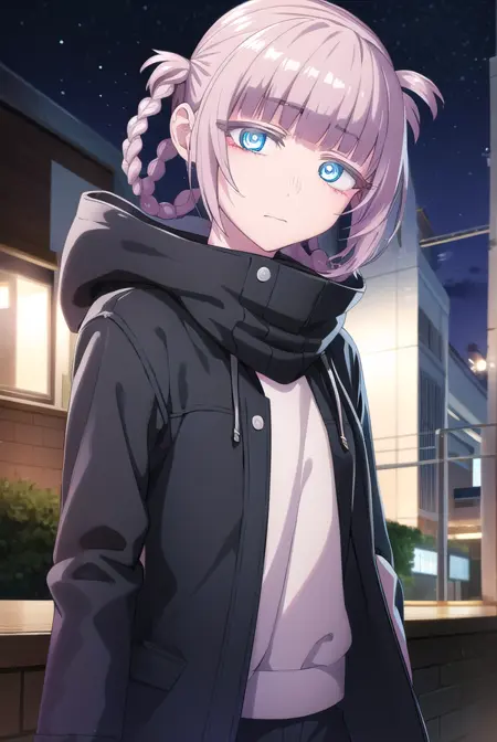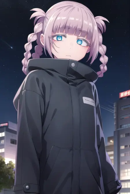 nazuna nanakusa,短发,刘海,蓝眼睛,粉发,辫子,齐刘海,发圈,环状眼睛,