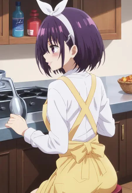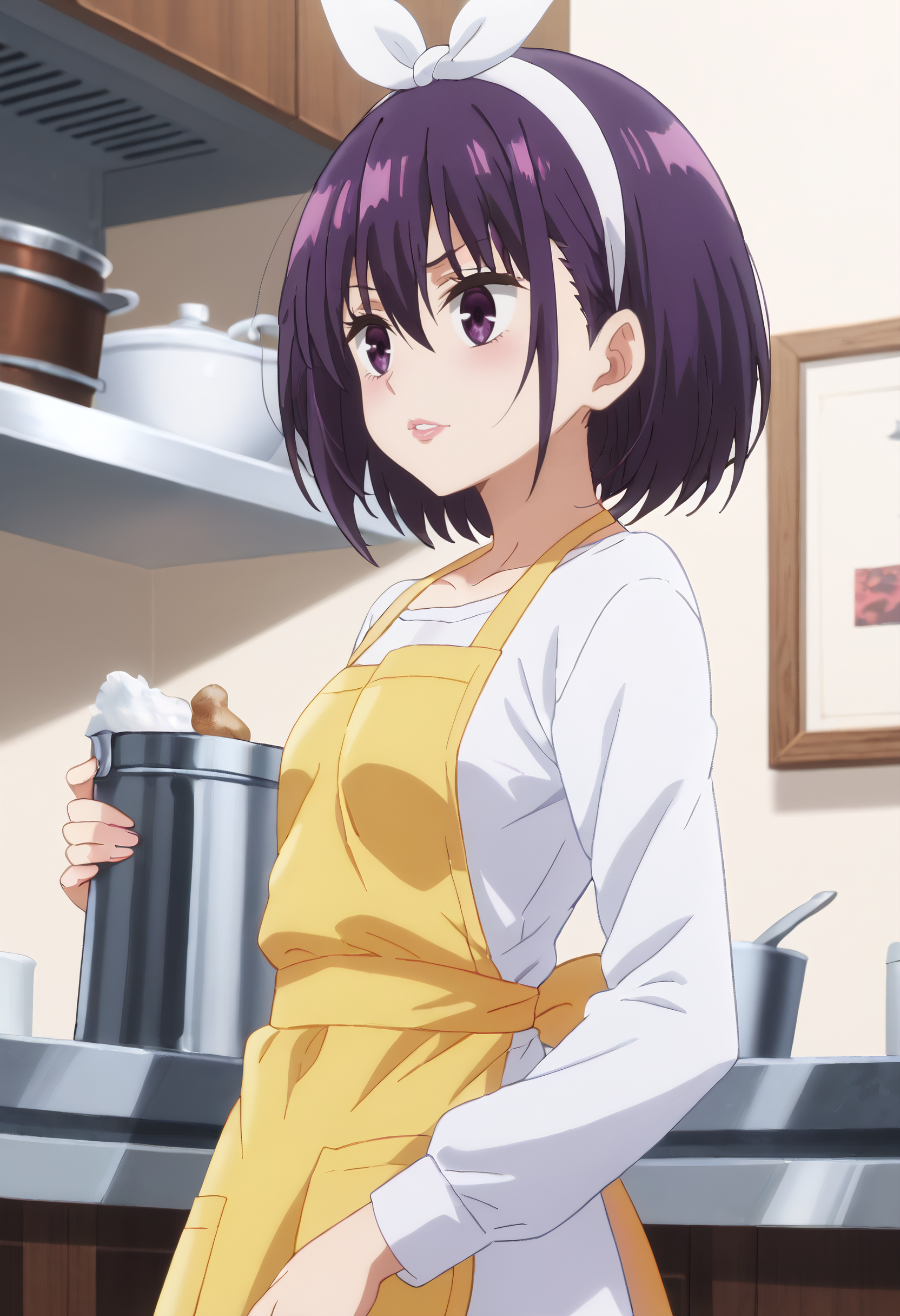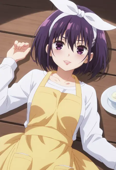 SuzuApron、ヘアバンド、鎖骨、エプロン、シャツ、長袖、黄色のエプロン、白いヘアバンド、白いシャツ、