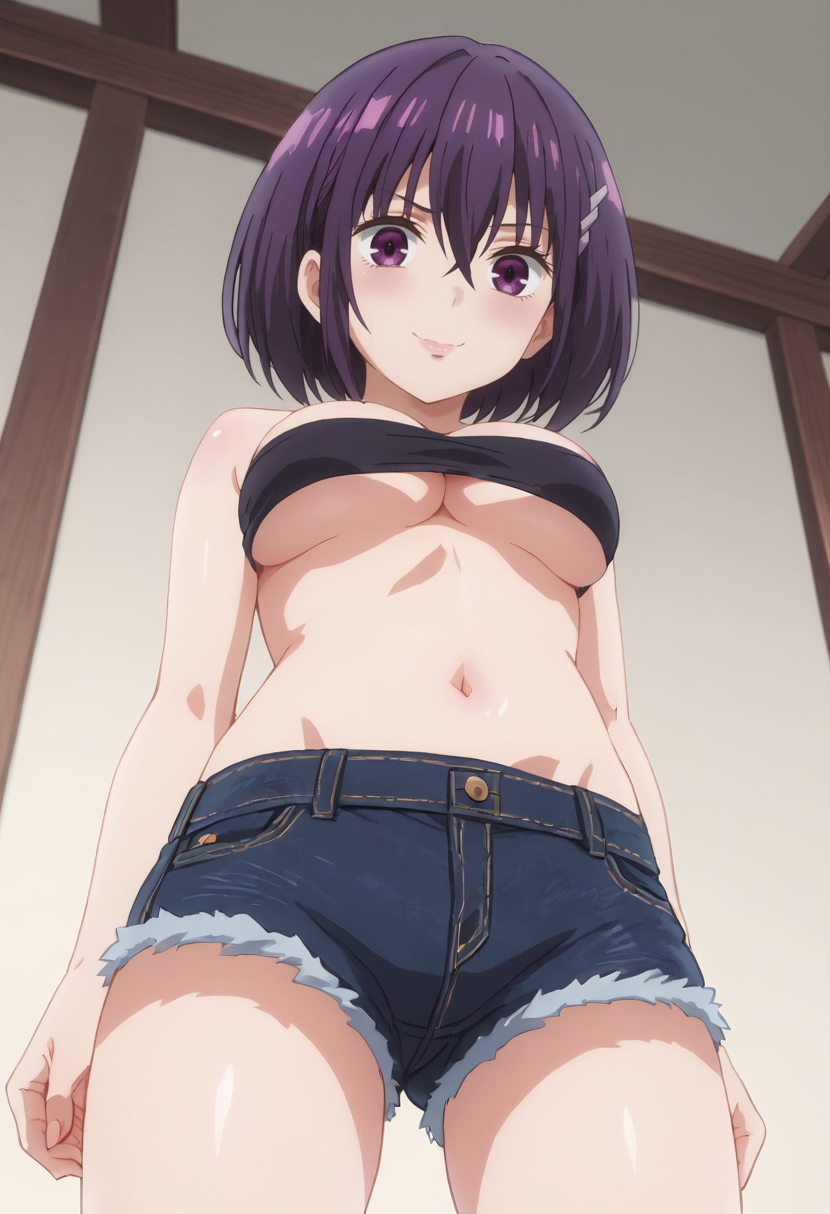 ATSuzu、短い髪、前髪、紫の髪、紫の目、髪の間から見える眉、目と目の間の髪、