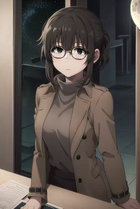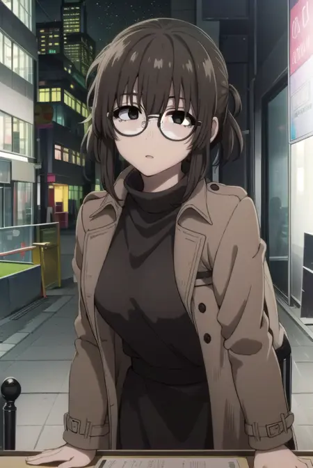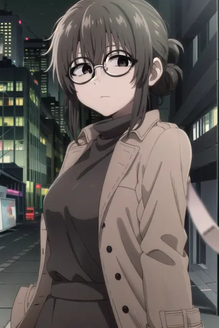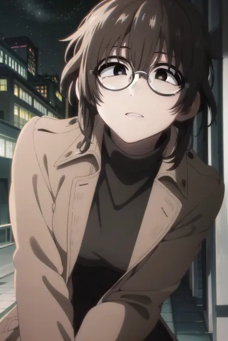 anko uguisu, 短发, 棕色头发, 眼镜, (黑眼睛:1.5),