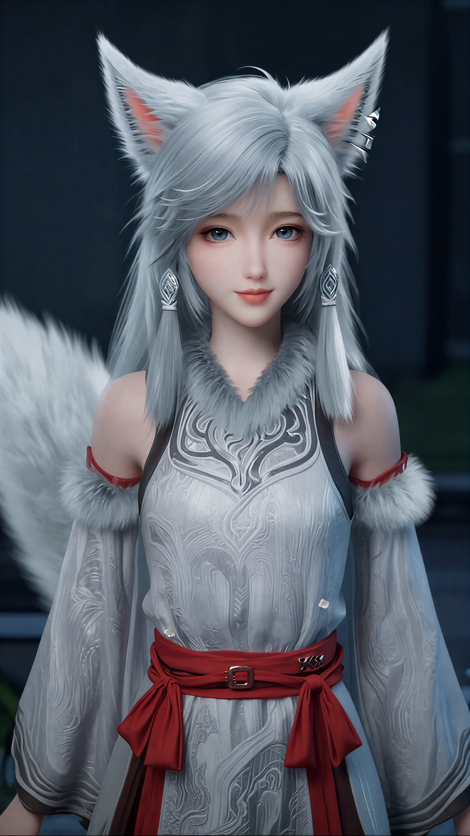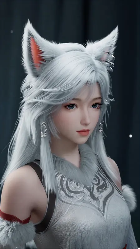 プロンプト:女の子、凡人修仙伝アニメ、銀月、獣耳