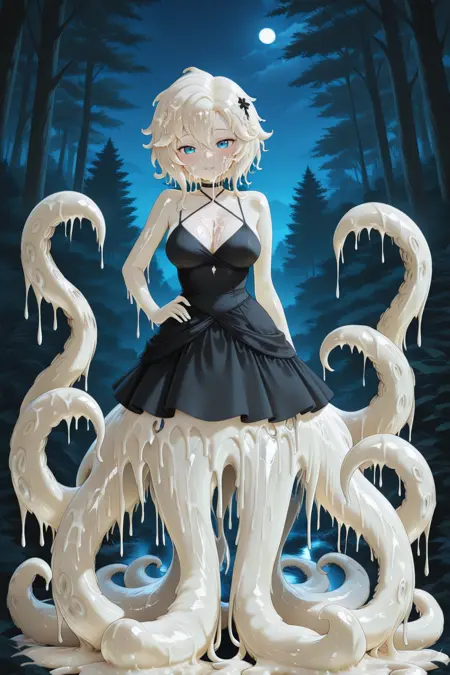 One deer day, I thought, "What if bukkake covered the body so much that it would look like clothes?" That's how the idea for my Cum-clothes LoRA was born. But creating a dataset for such a LoRA turned out to be a difficult task. At least there are no suitable images on the Internet. And also, I had never trained LoRA yet. So I decided to try something simpler. "What if there was a slime girl, but instead of a slime there would be cum?"