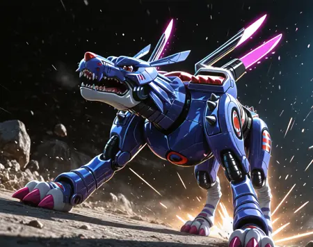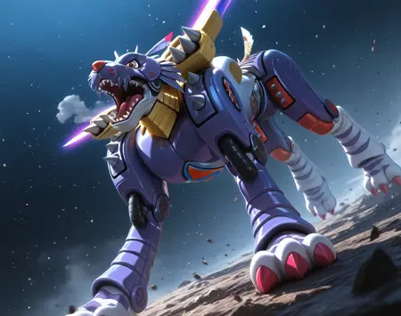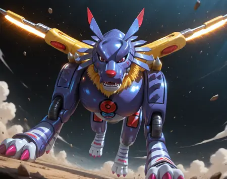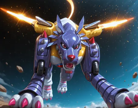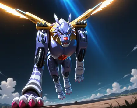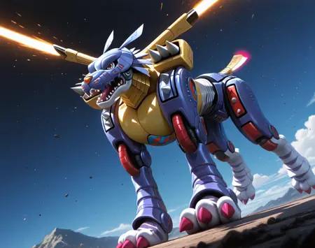 Prompts for this lora are ( Metalgarurumon, robot, wolf, Digimon, ).