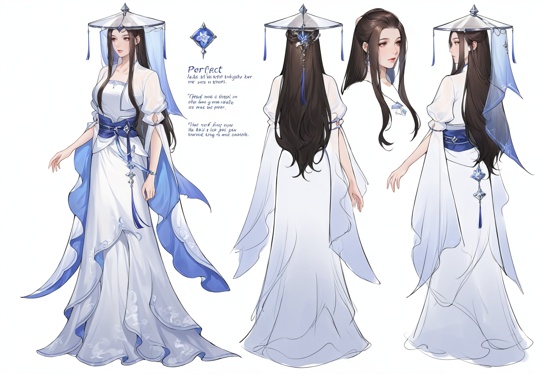 hat,hair ornament,veil,dress,white dress,sash,long sleeves,chinese clothes,jewelry,asymmetrical sleeves
