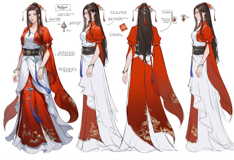 dress,jewelry,red dress,earrings,hair ornament,bracelet,sash,chinese clothes,breasts,jacket,tassel,belt,clothing cutout,white dress