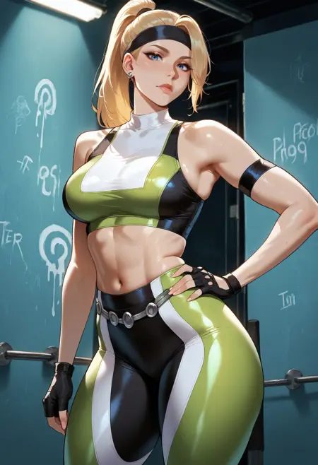 sonyamk3,ponytail,sports bra,fingerless gloves,pants,spandex,