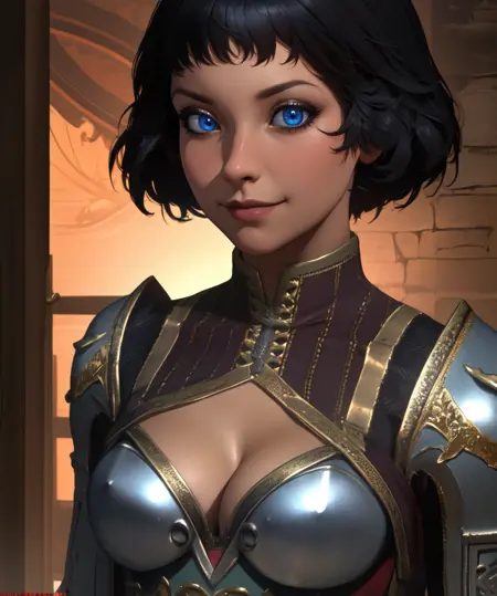 mercedes, blue eyes, black hair, - short hair,