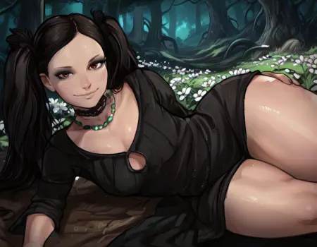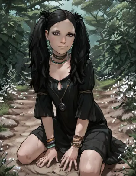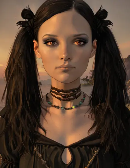 selene、茶色の目、ツインテール、黒髪