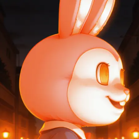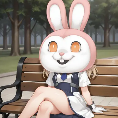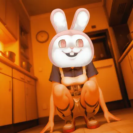 usagi,kigurumi head,rabbit head,large ears,furry,pink fur,orange eyes,face hidden,masked,no visible mouth