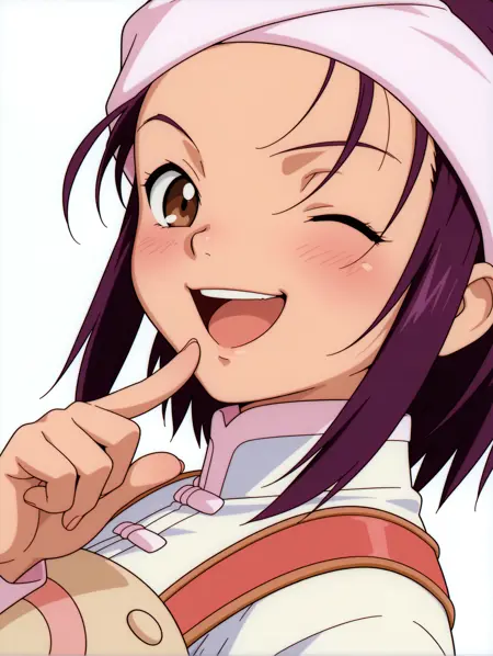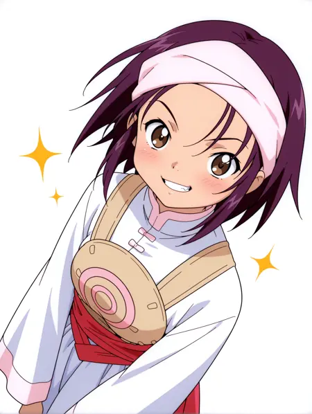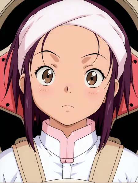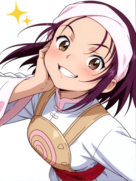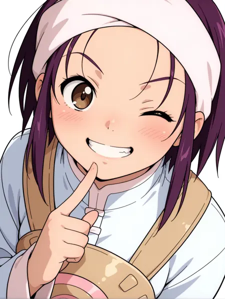 トリガーワード・hanmyo、purple hair、brown eyes、