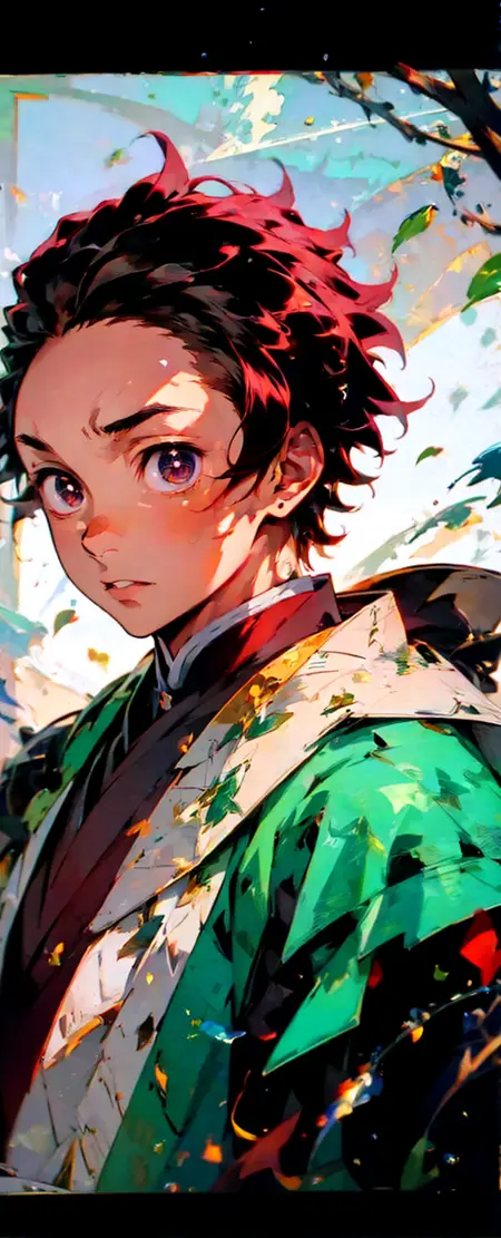 データセット: 35枚の画像 | 学習ステップ: 3200 | LoRA重みのおすすめ: 0.4-0.8 | イテレーションステップ: 20-35 | CFG: 5-7 | プロンプトワード: kakaxi, masterpiece, best quality, absurdres, 1boy, upper body, portrait, dynamic_angle, rim light, high saturation, looking_at_screen, masterpiece, best quality, Tanjiro, kimono, lora:Tanjiro:0.8