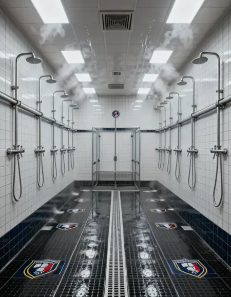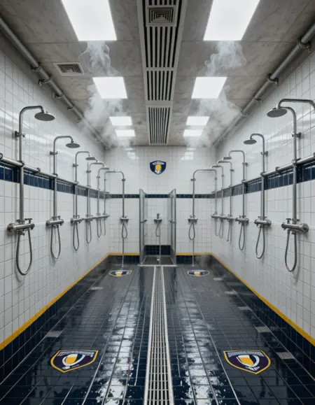stadium communal shower room illu