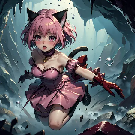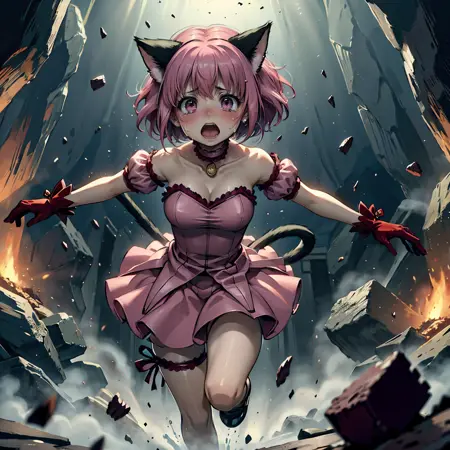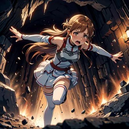 Thinking that escape scenes from within a cave are essential for dungeon-themed images, I managed to generate a large number of images of a collapsing cave and compiled them with Lora.