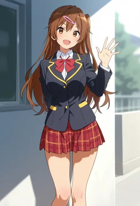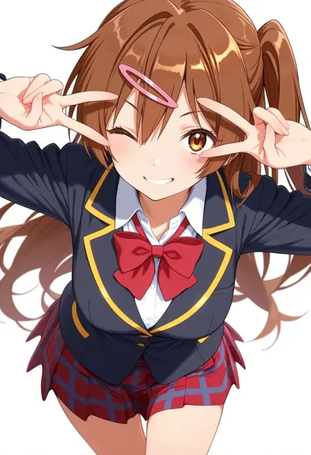school uniform,black jacket,red skirt,red bowtie,plaid skirt,