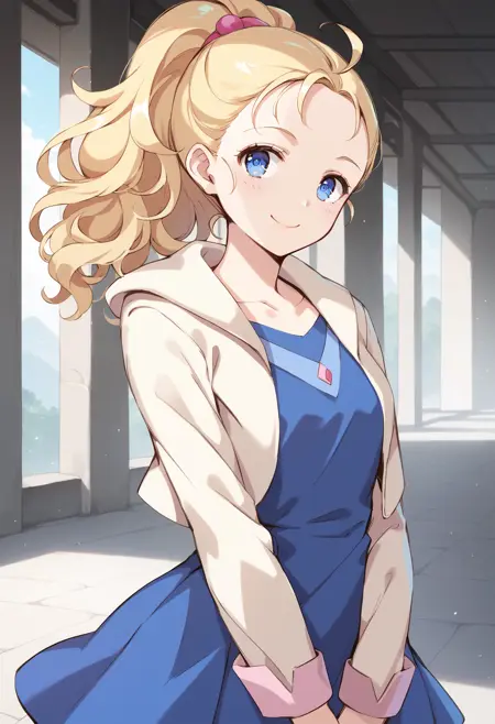 为她的典型造型添加 "blue eyes,jacket,blue dress,boots"。(DefaultPonyXL-v1.0、DefaultSD1.5-v2.0、DefaultSD1.5-v1.0)