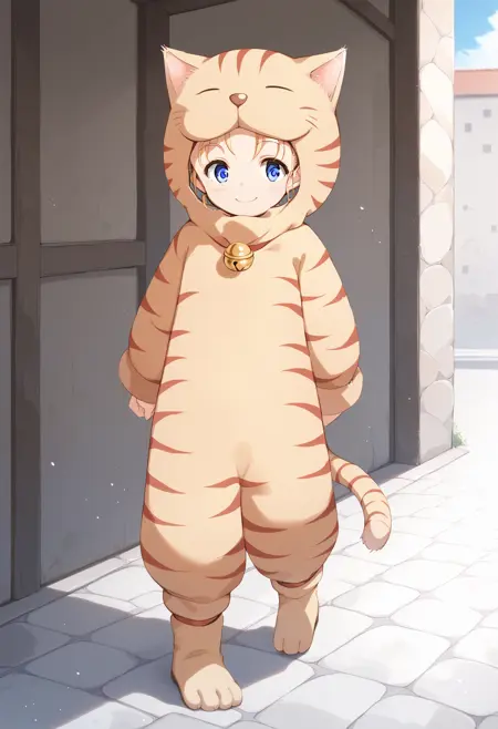 为她的狂战士造型添加 "kigurumi,tiger costume,neck bell,tail"。