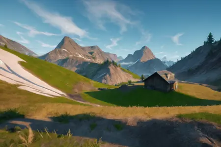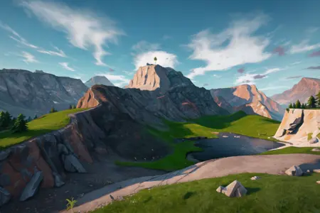 Fortniteの第1章「Season OG」から、リプレイモードでほぼ最大のグラフィック設定で撮影されたシーン、風景、建物、背景。これらの画像は、背景や壁紙用に意図されているため、参照材料には人物が含まれていませんが、人物を含んでも使用可能です。注意点として、ゲーム内での場所の名前(例:「チルテッドタワーズ」)で学習されていないため、「チルテッドタワーズ」とプロンプトを入力してもその都市を再現することはできません。