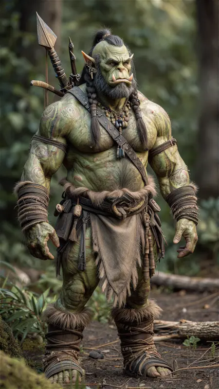 プロンプト例:a photography of a orcx orc warrior in a forest, cinematic.