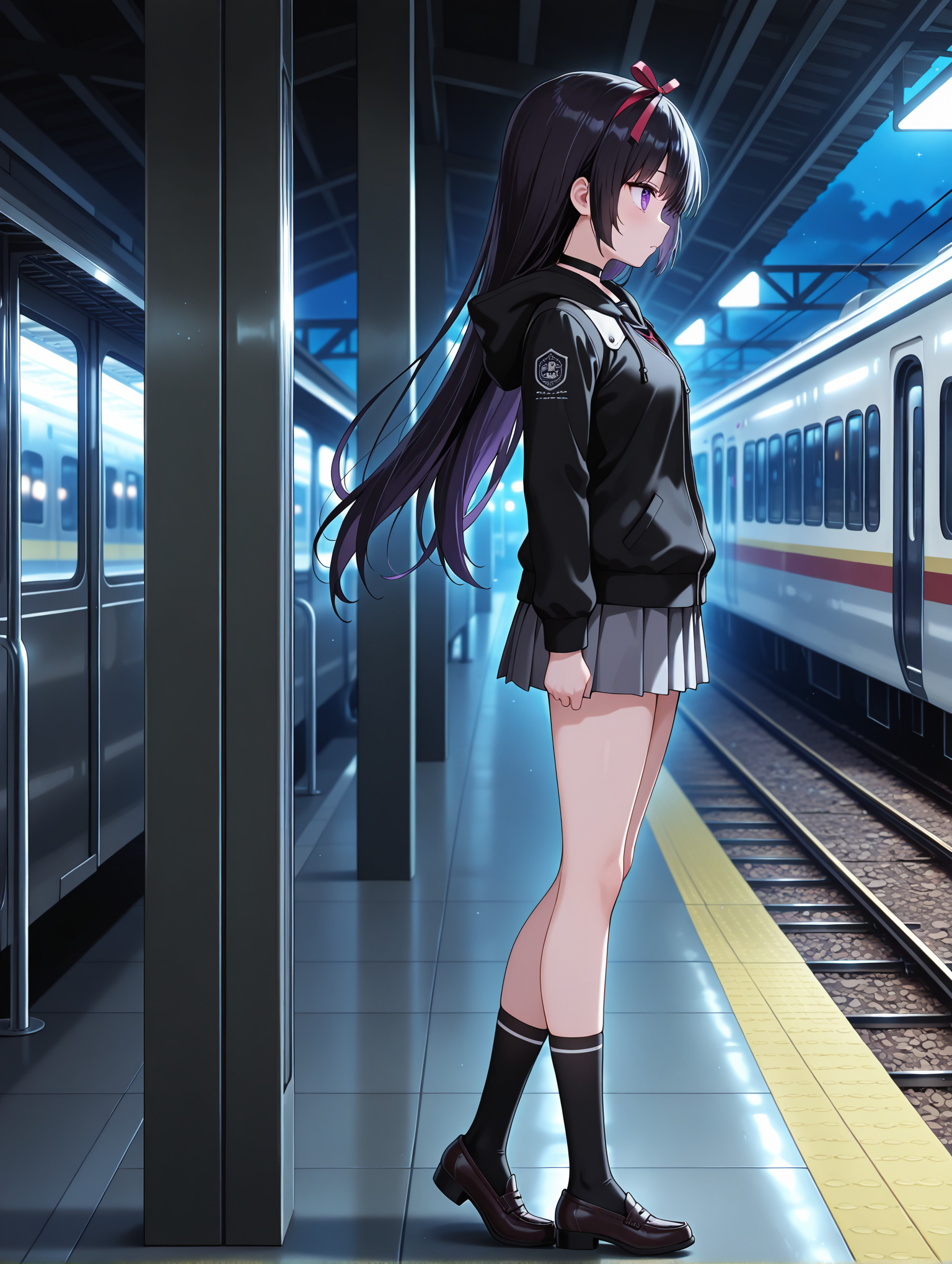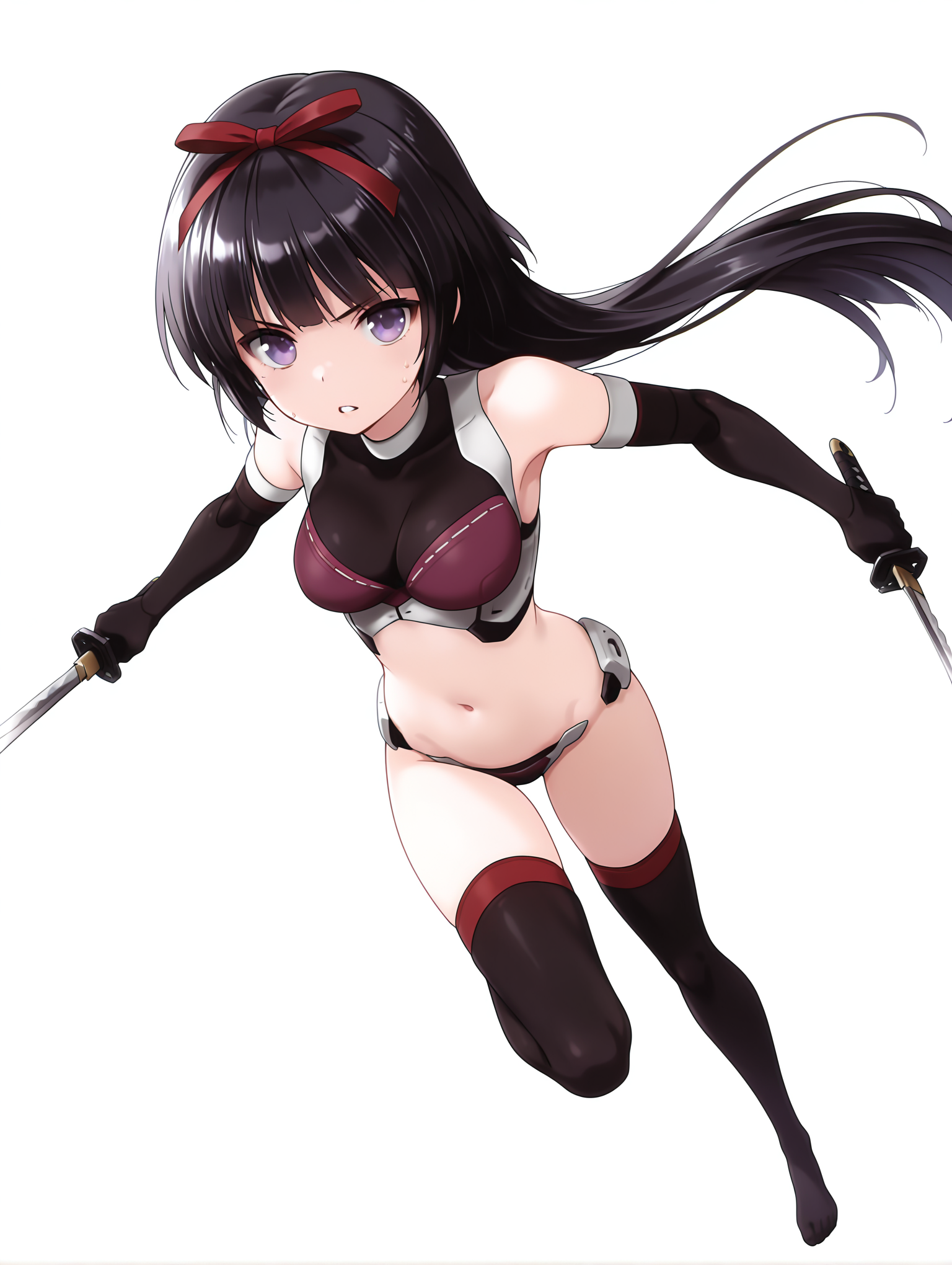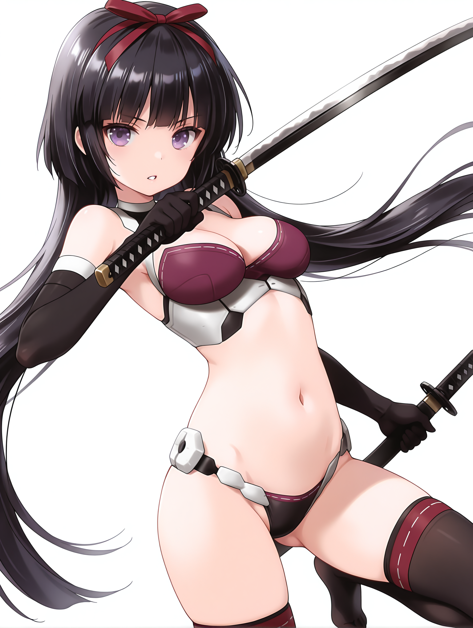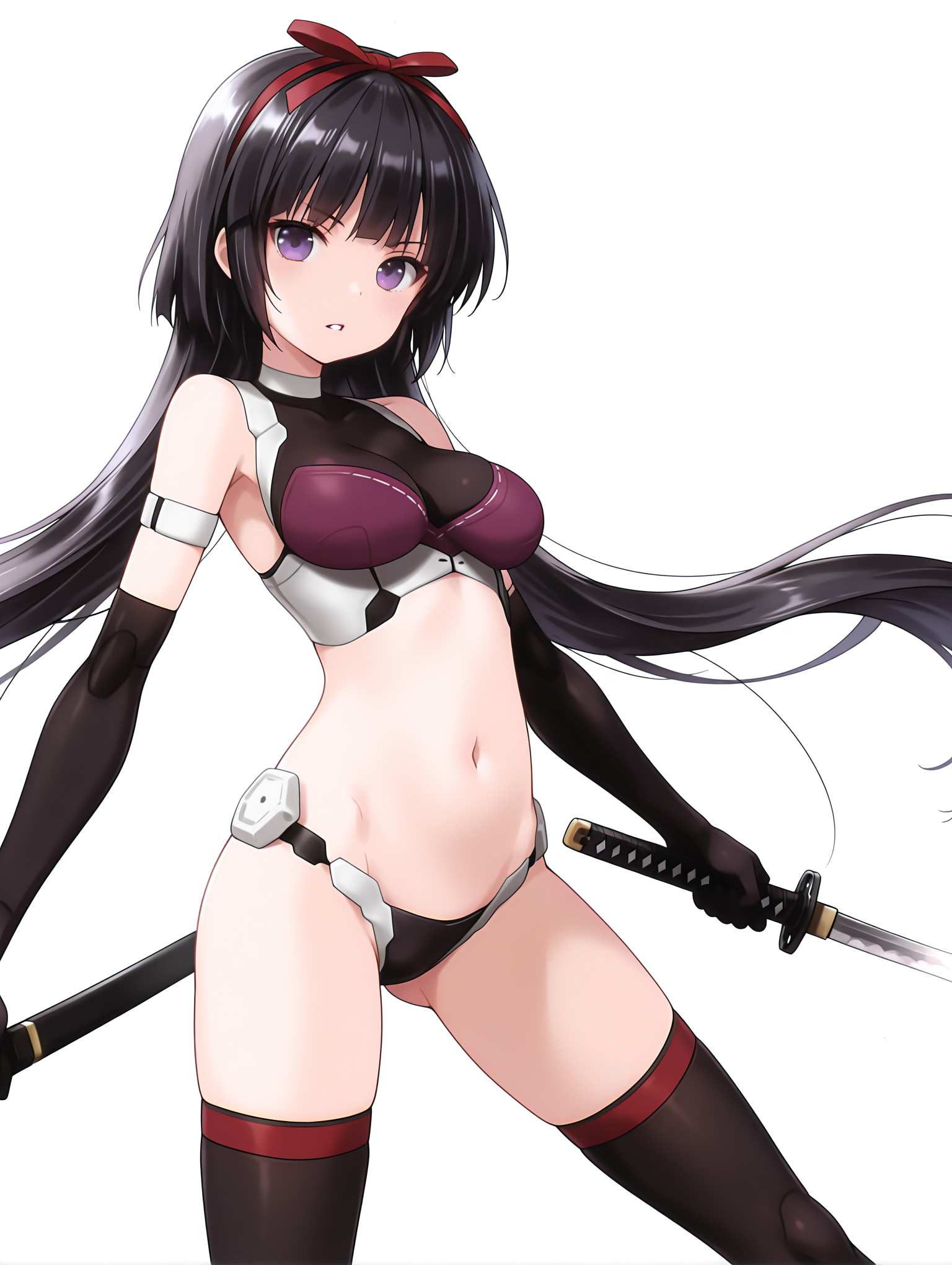 触发词:magatsuki, 黑发, 发带, 紫色眼睛, 长发,