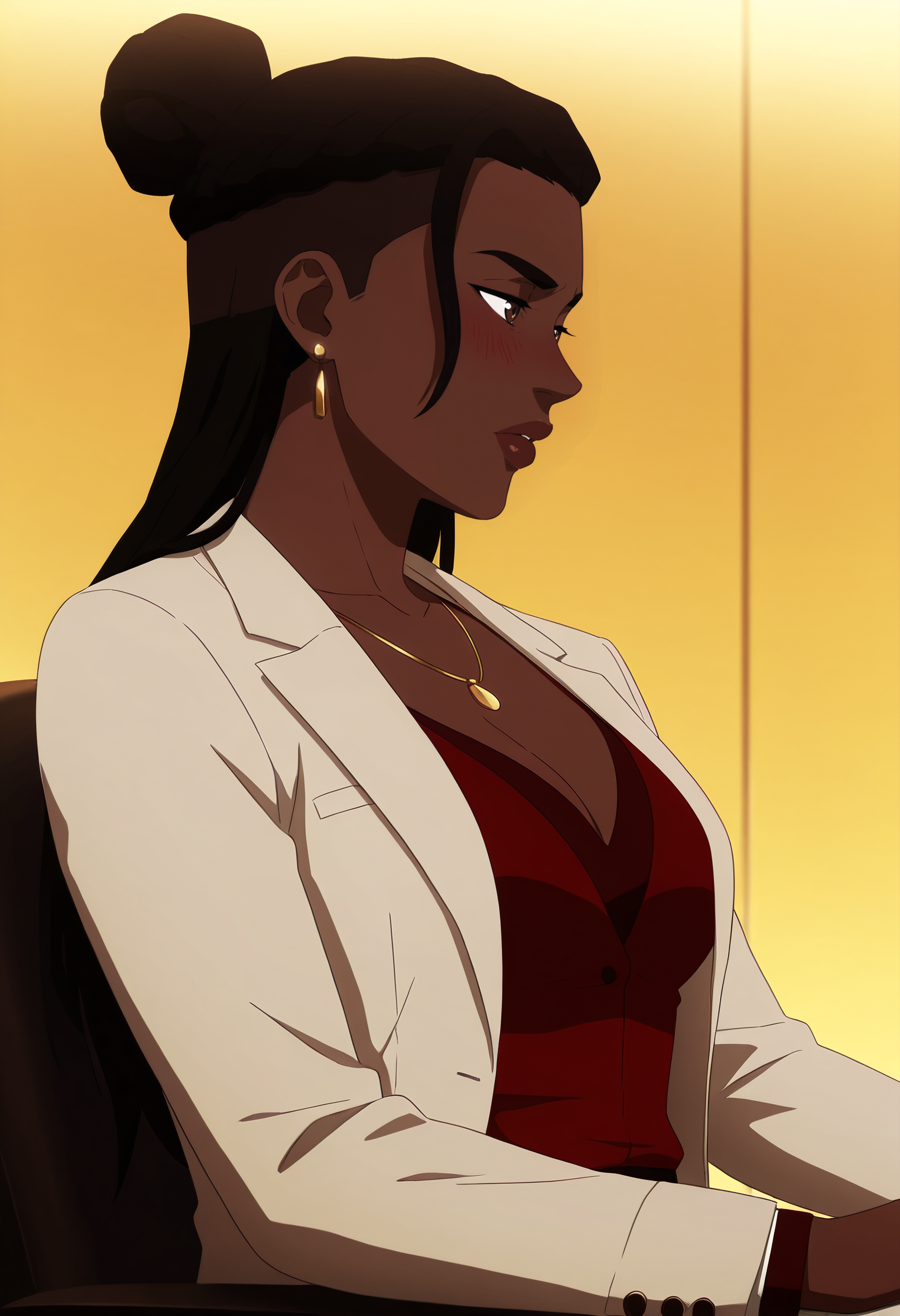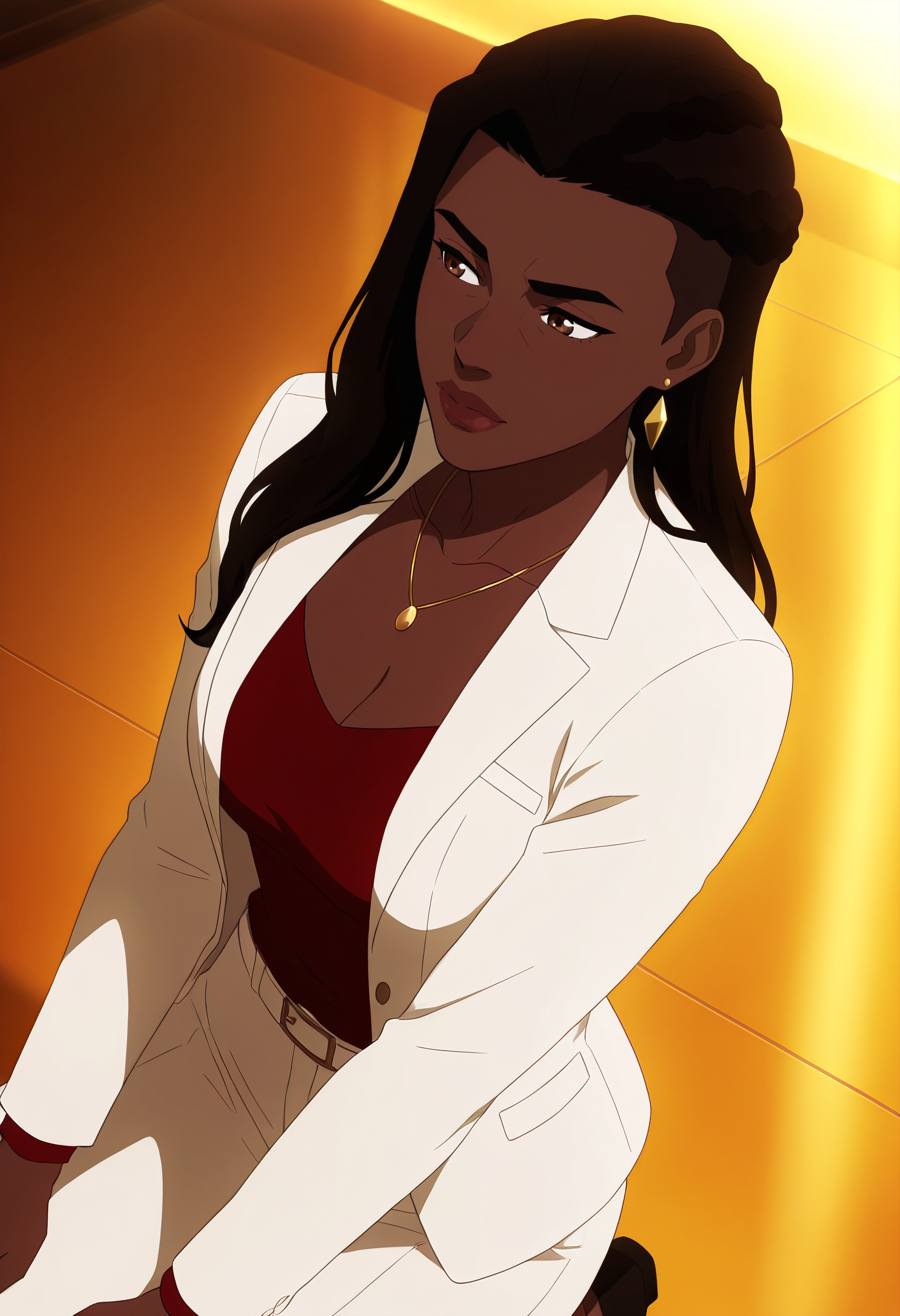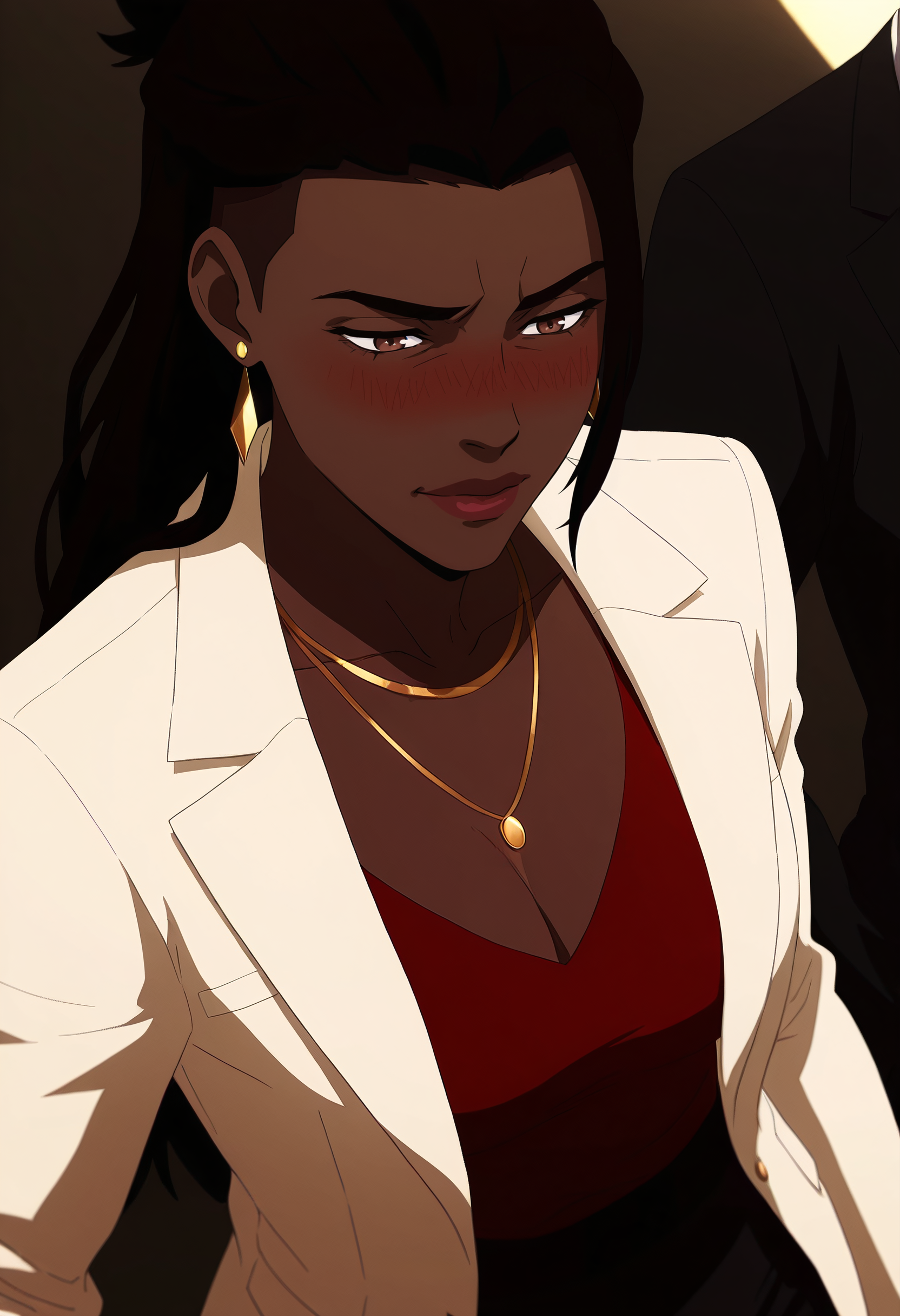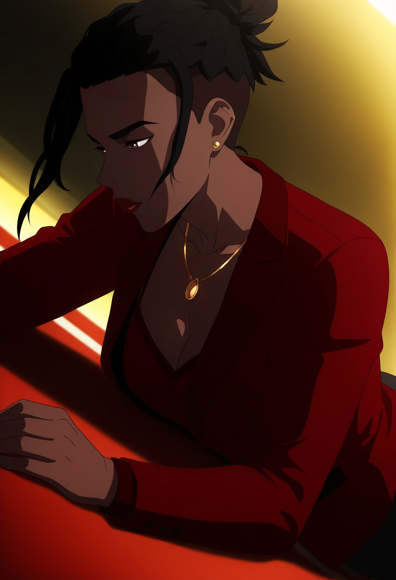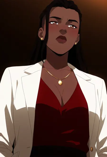 ZinniaDress, 보석, 목걸이, 귀걸이, 셔츠, 짧은 머리, 입술, 메이크업, 재킷, 빨간 셔츠, 정장, 수트, 어깨뼈, 립스틱, 가슴,