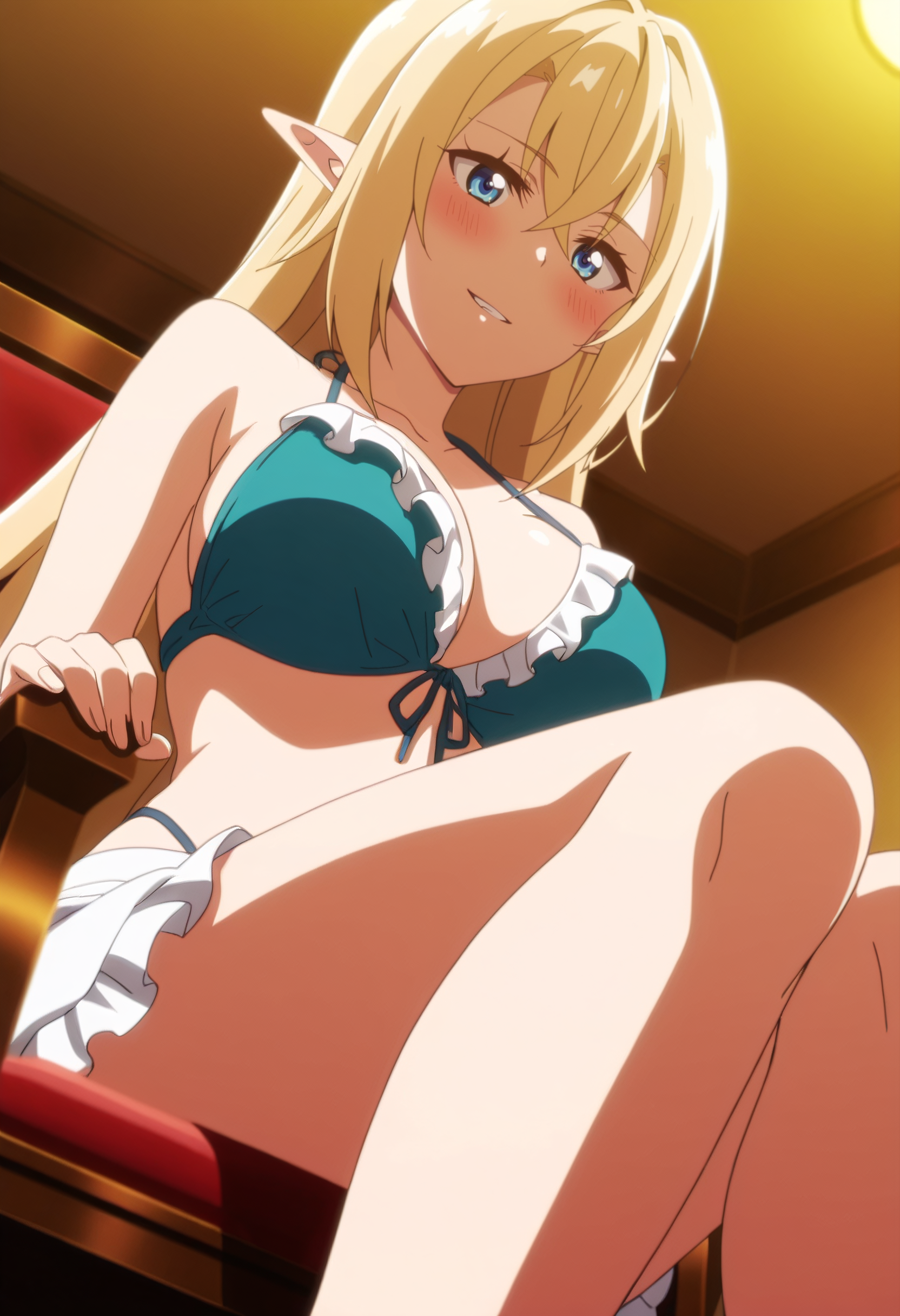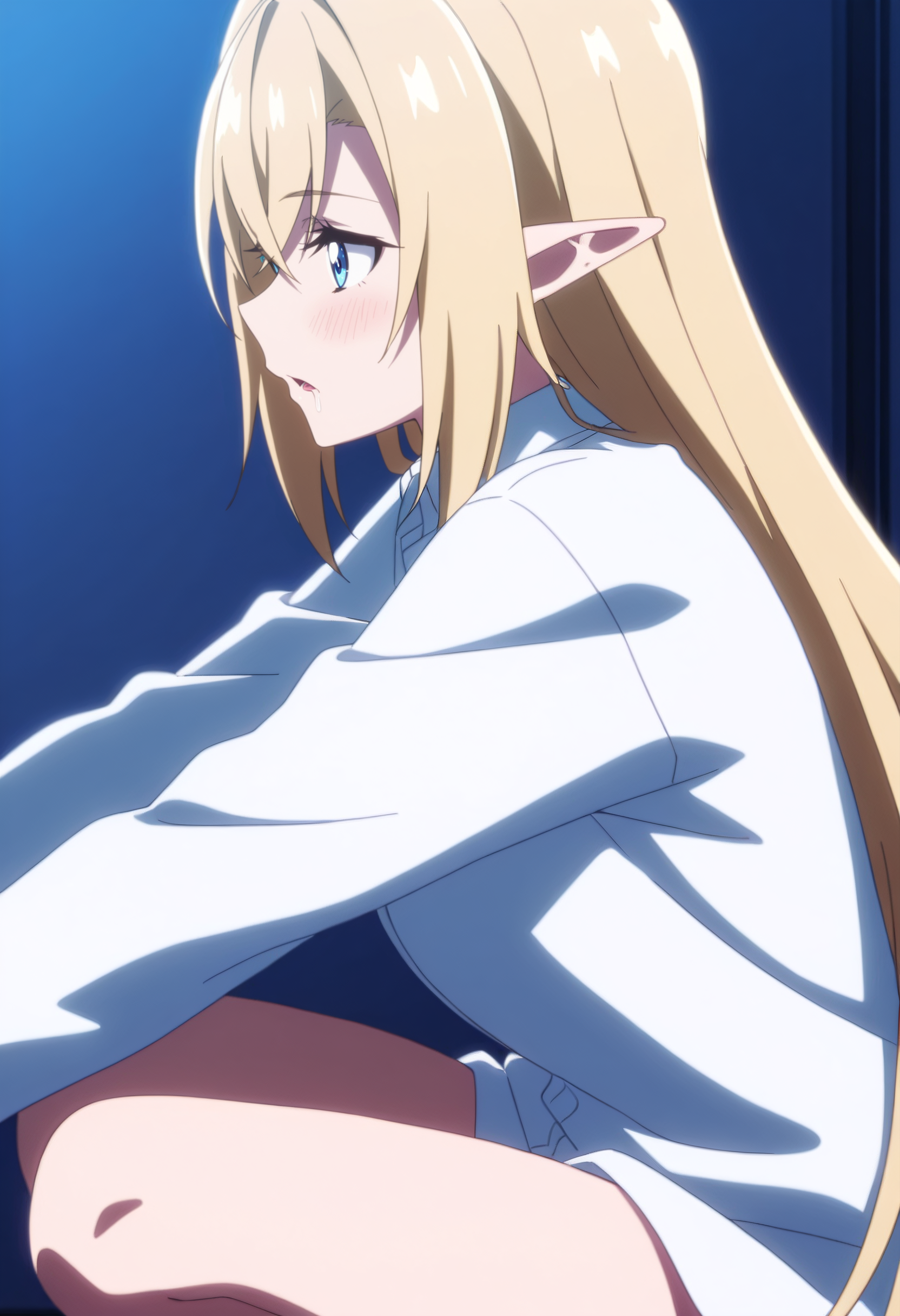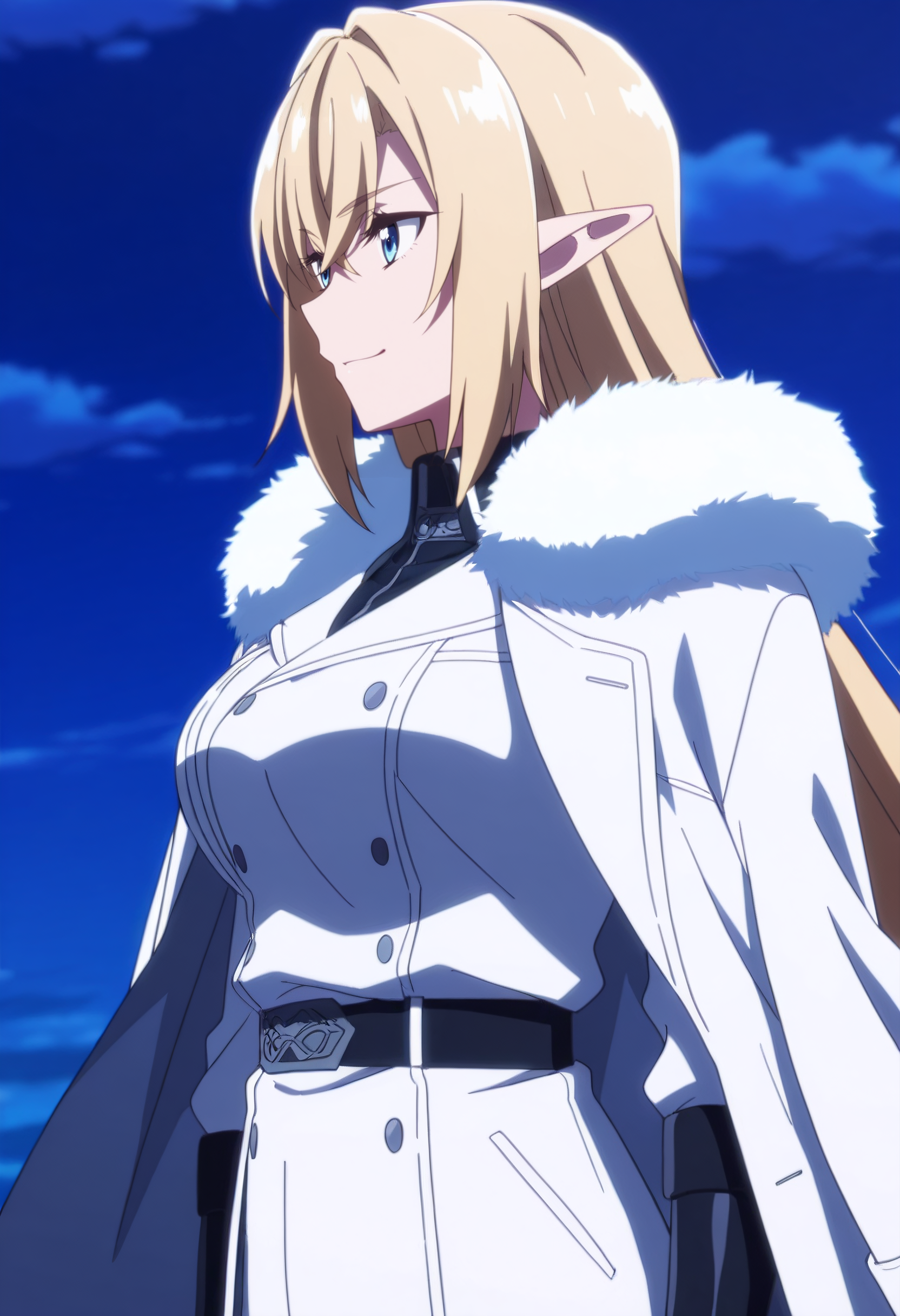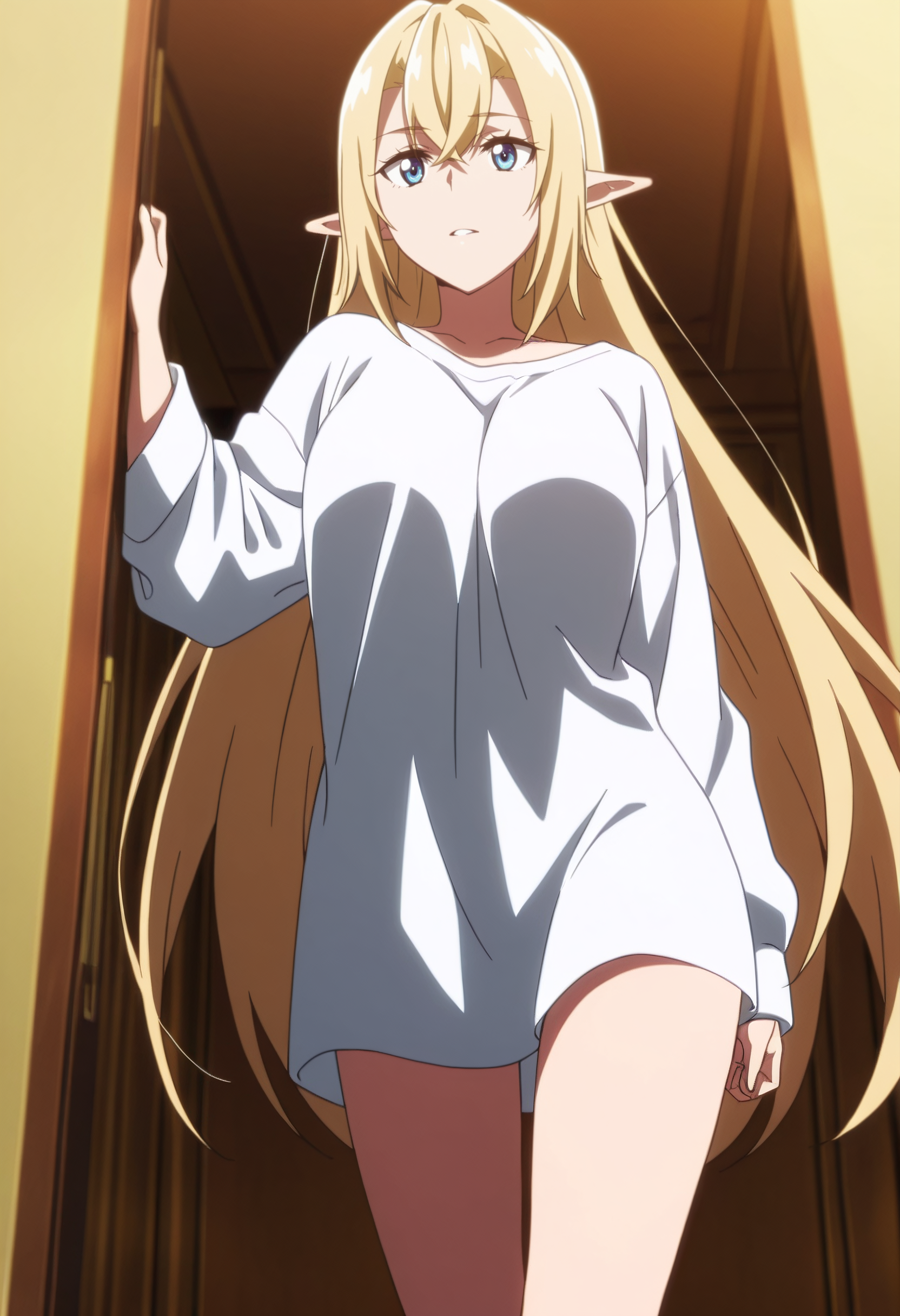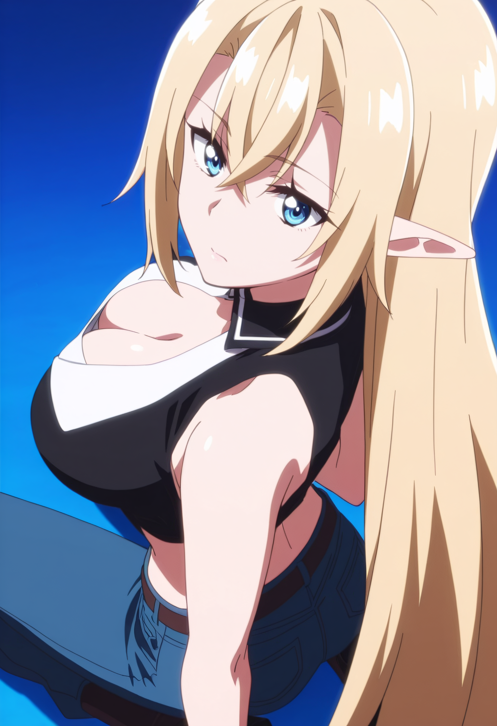 BAlisha, 긴 머리, 눈 사이의 머리, 금발, 날카로운 귀, 파란 눈, 앞머리, 머리카락 사이로 보이는 눈썹, 긴 날카로운 귀, 옆머리,