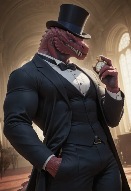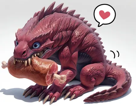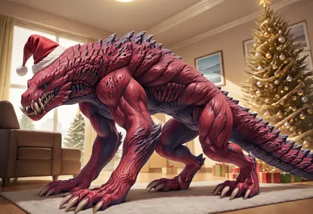 트리거 단어: 0d0g4r0n, feral, monster, quadruped, scales, red body, red scales, fangs, claws, spines, tail