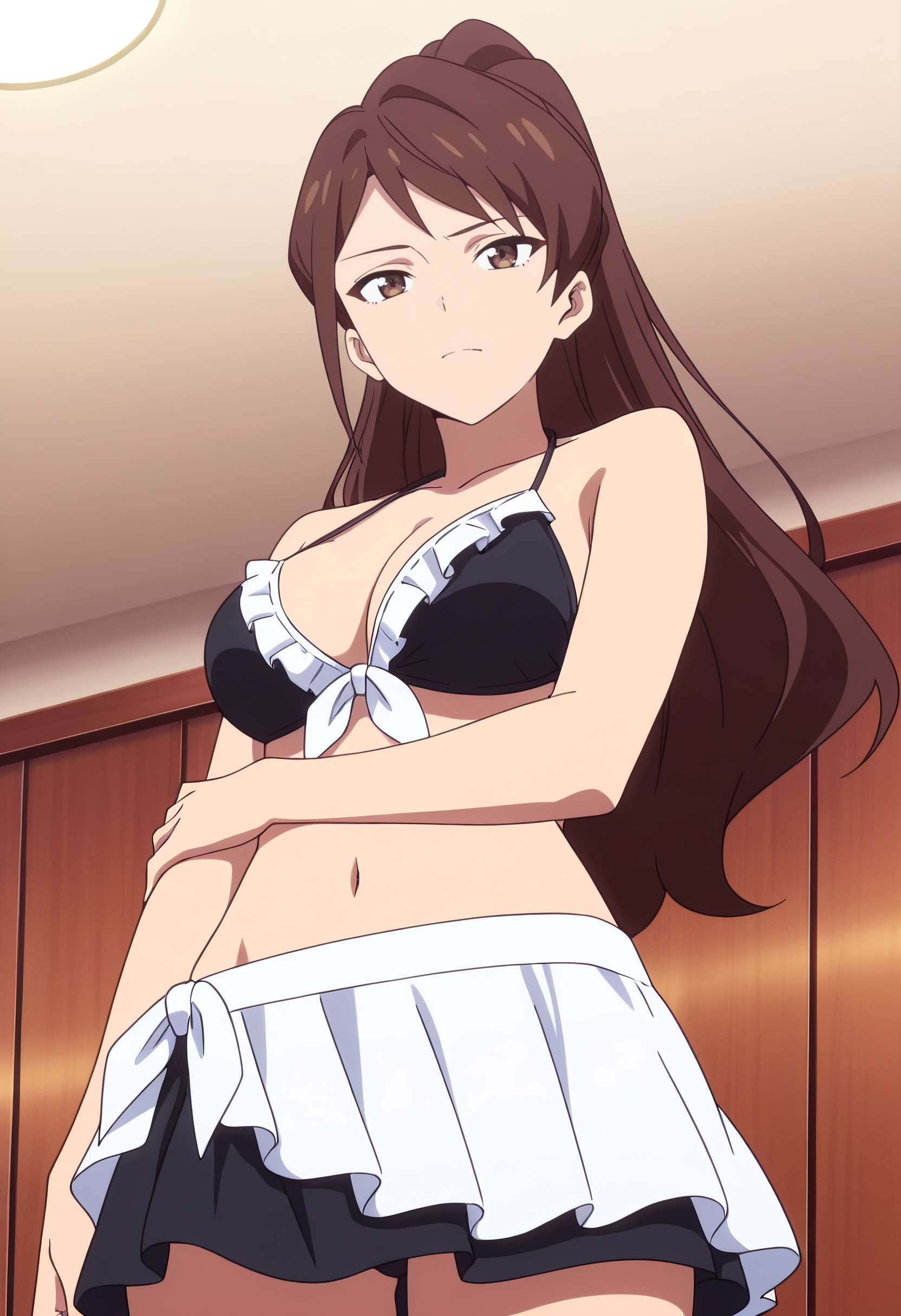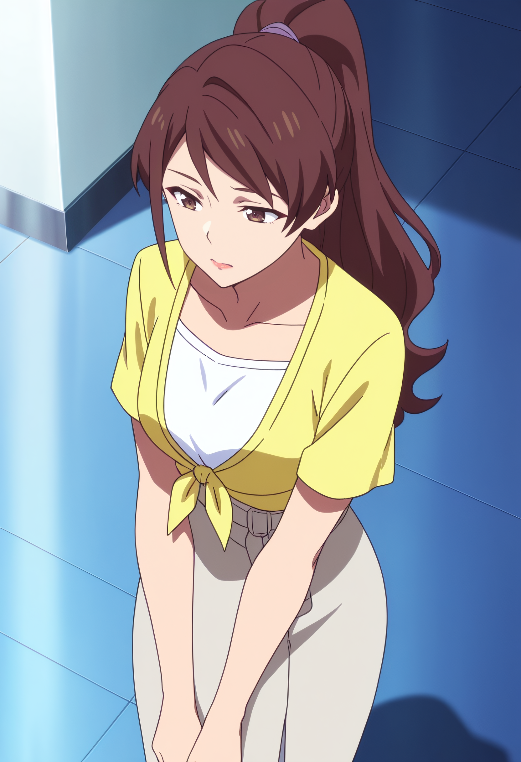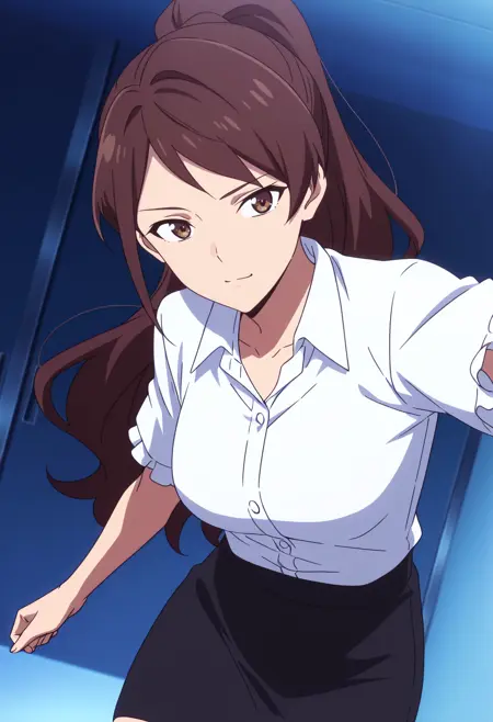 TDLWangMother, 긴 머리, 갈색 머리, 갈색 눈, 포니테일, 앞머리,