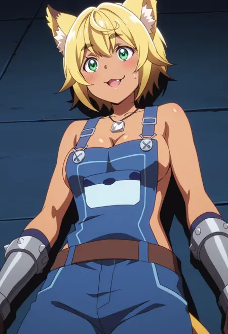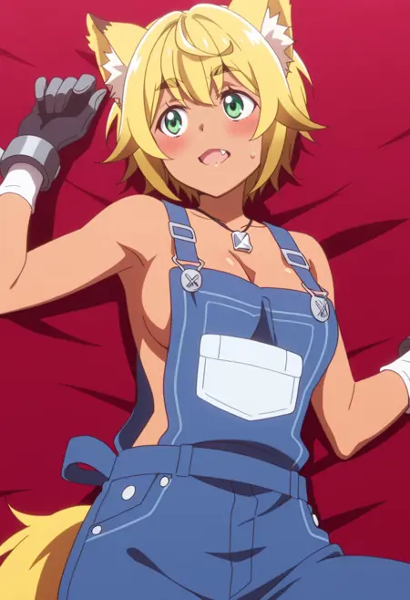 ジュエリー、肩出し、ネックレス、牙、鎖骨、手袋、オーバーオール、胸元、タンクトップ、ペンダント、アーマー、サスペンダー、裸のオーバーオール、サイドブック、ノースリーブ、