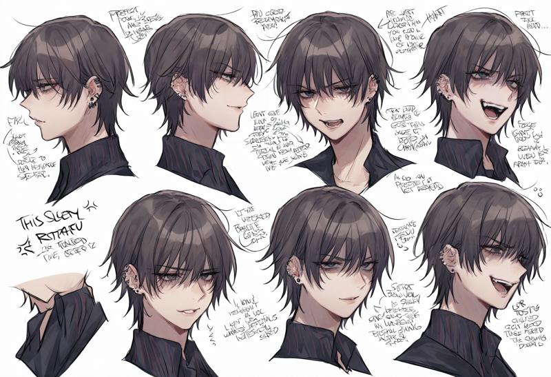 1girl,blue eyes,grey eyes,brown hair,black hair,black eyes,short hair,bangs,ear piercing