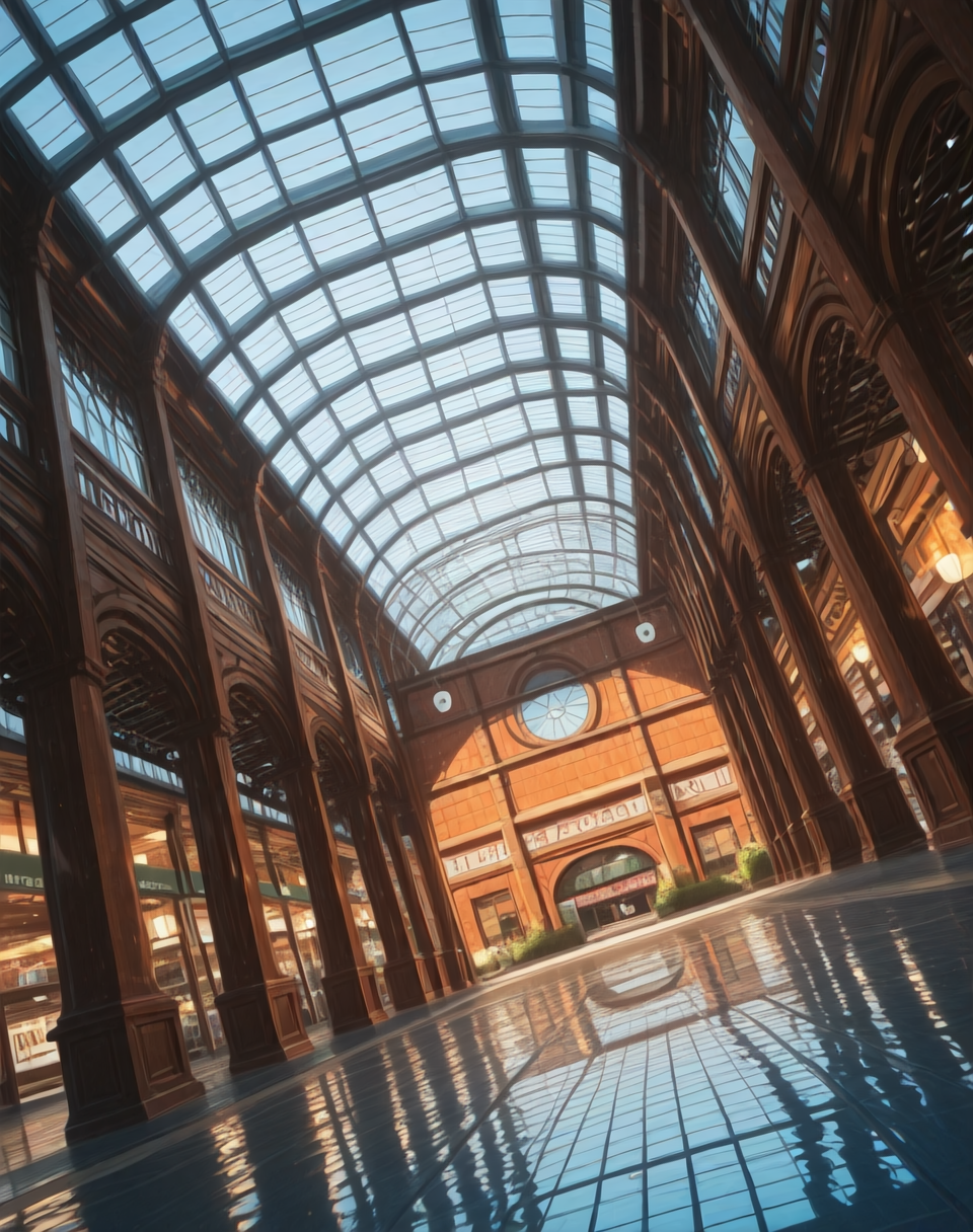 这是一个适用于美式拱廊风格建筑的Illustrious LoRA。拱廊是被玻璃覆盖的区域,通常呈长条状,类似宽阔高大的走廊。这种风格非常适合打造有顶的购物区、公共区域、火车站、购物中心和有顶市场。请注意,这与电子游戏厅无关。