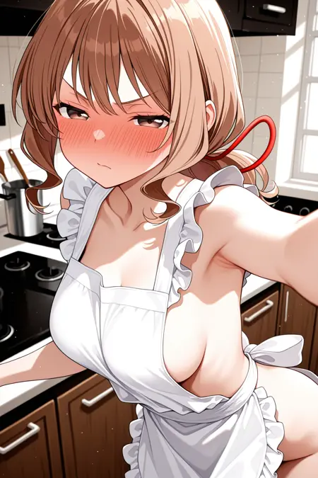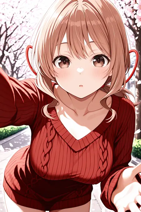 amagami yuna, brown eyes, hair ribbon, low ponytail, light brown hair, red ribbon