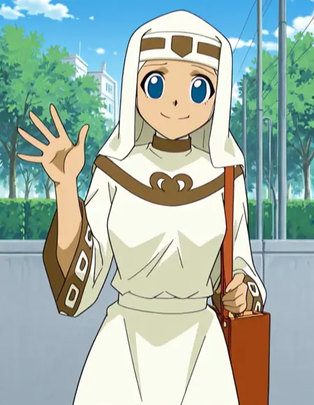 训练提示:ellechan, Ellechivas, 蓝眼睛, 修女, 修女服装, 白色修女服装, 修女袍, 修女, 袍子, 宽袖, 长袖, 长袍