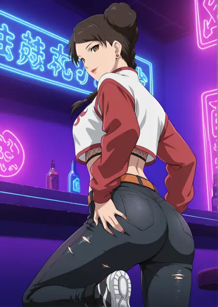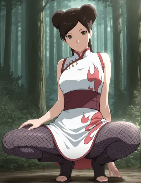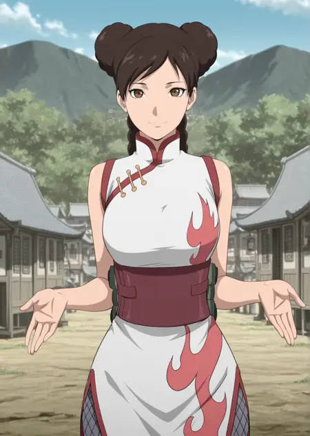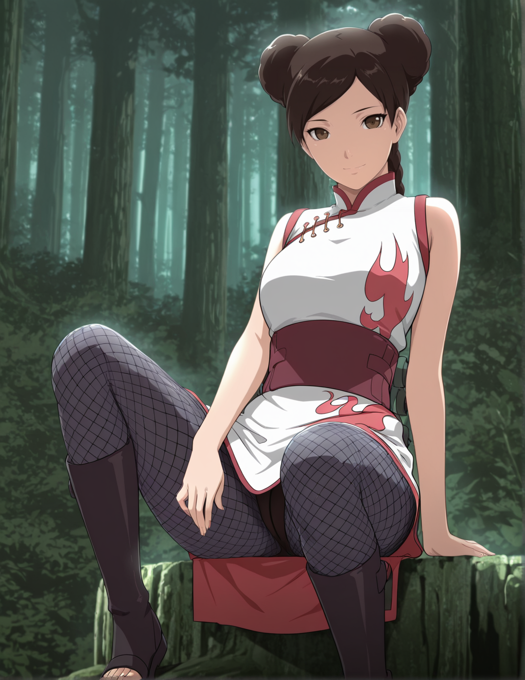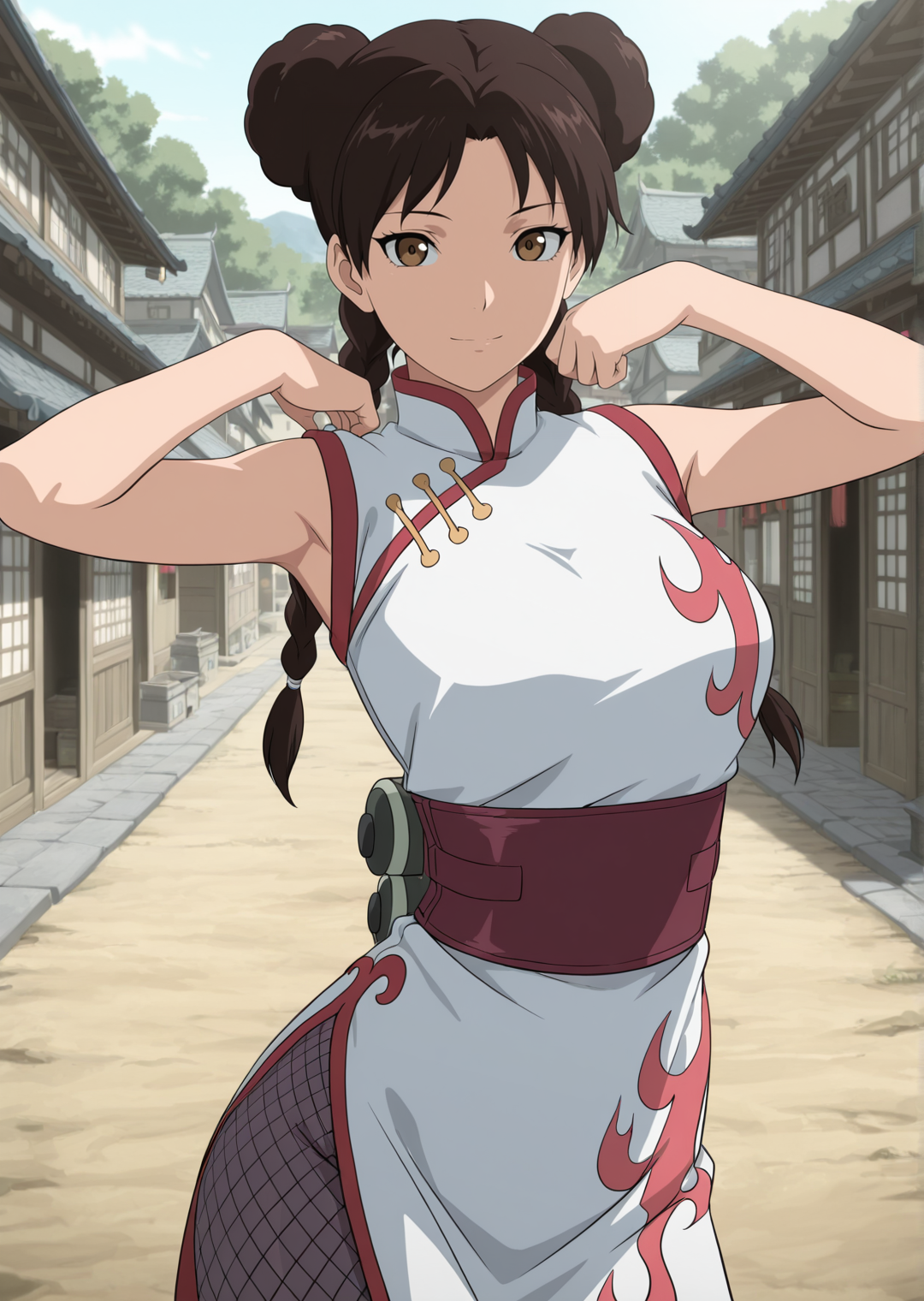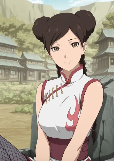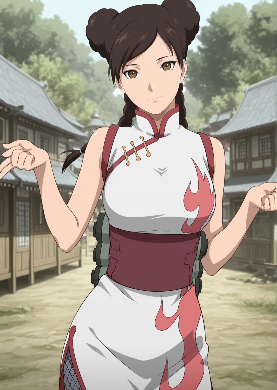 Tenten, 1girl, solo, hair bun, double bun, brown hair