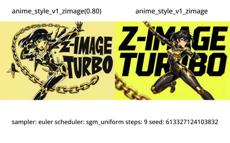 より良い結果を得るには、このVAEを推奨します:https://huggingface.co/Anzhc/Z-Image_Anime_VAE/tree/main